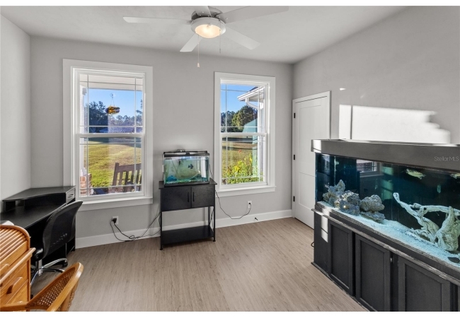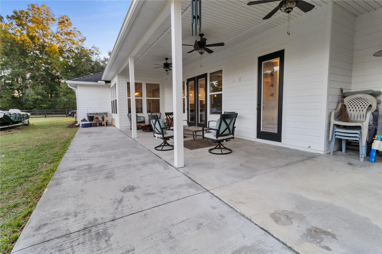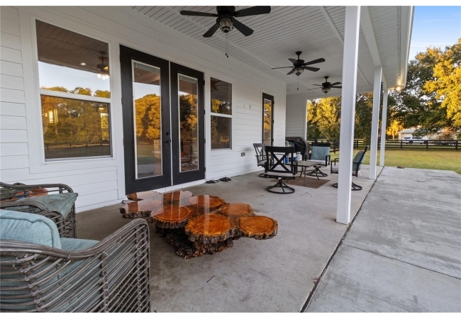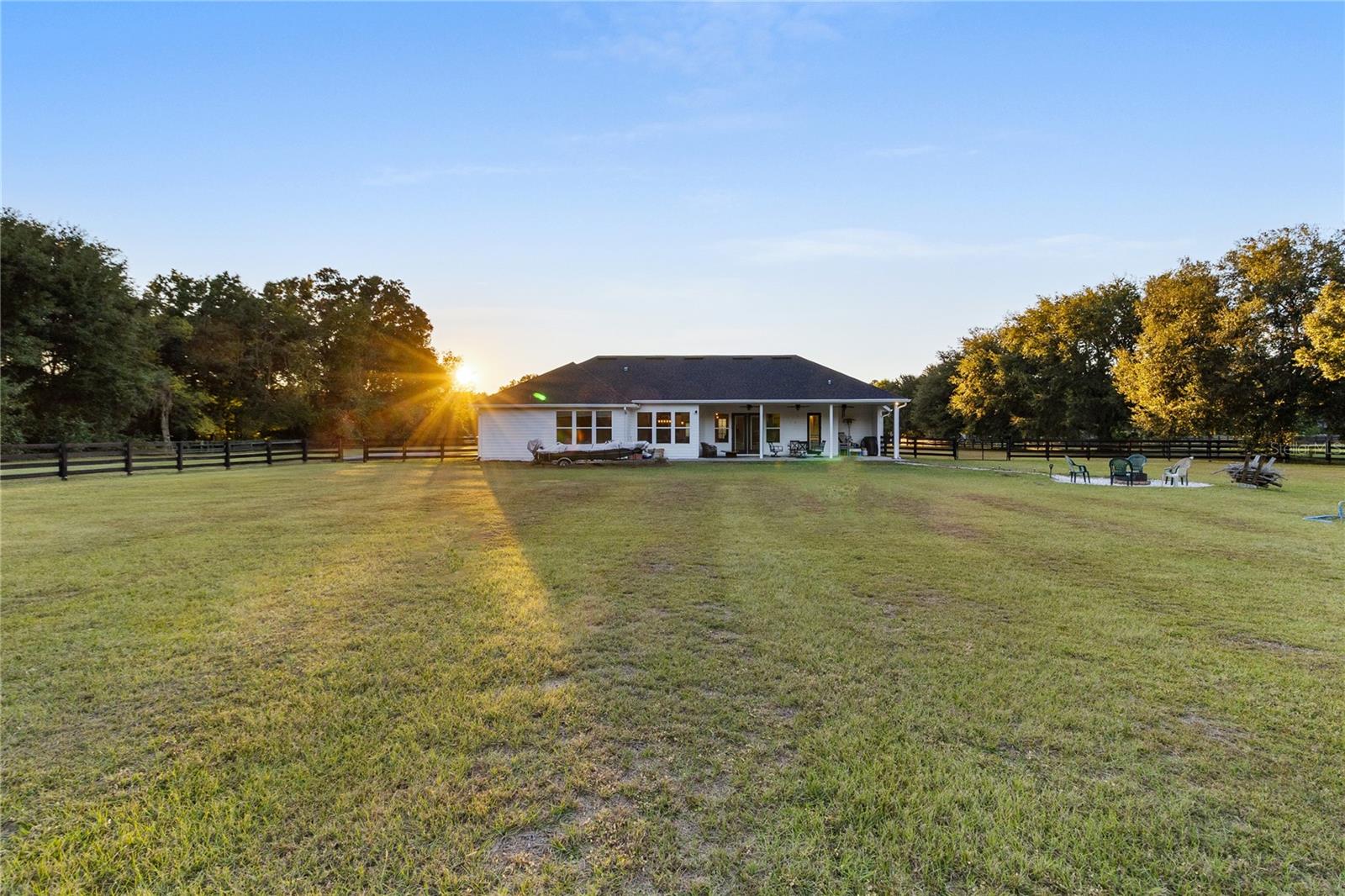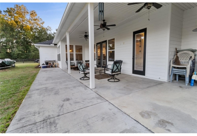 The back porch offers the perfect spot for relaxing or entertaining, with ceiling fans, plumbing for a future summer kitchen, and a peaceful view of the fenced backyard and fire pit area. The fenced section directly off the porch provides a secure area for dogs or pets to enjoy, while the remaining acreage extends beyond, left natural and open for recreation, future additions, or simply enjoying the beauty of the countryside.