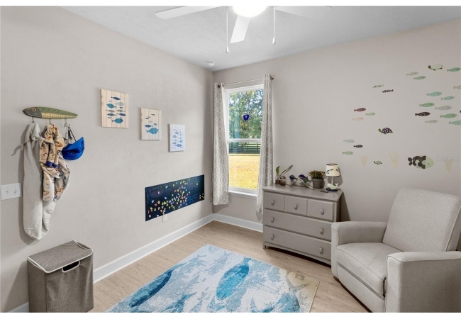 The home is equipped with a smart thermostat and smart irrigation controls, offering both efficiency and modern convenience. The five-acre parcel is cleared in the center and framed by mature tree lines along the edges, providing privacy while still allowing open views and soft breezes. Oak Ridge Crossing is known for its spacious homesites, quality-built homes, and tranquil setting. With well and septic utilities, a low and relaxed HOA, and convenient access to both Gainesville and Alachua, this property combines the peace of country living with the ease of modern luxury.