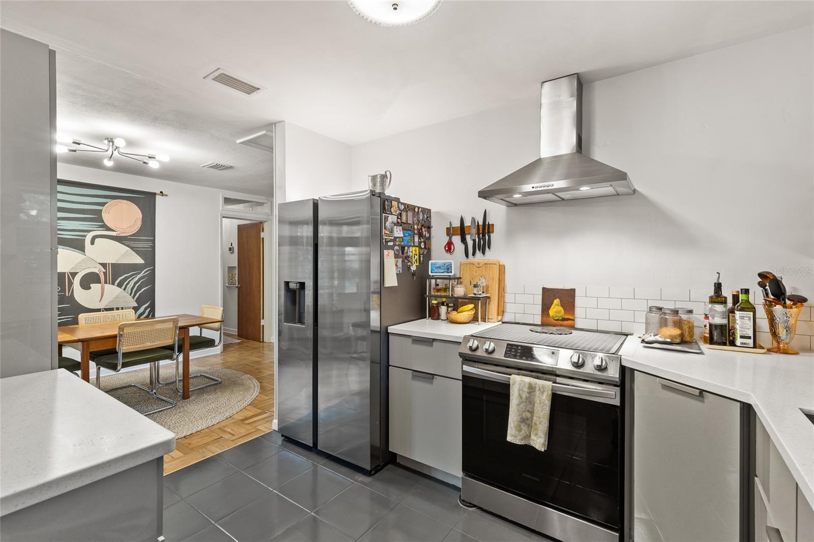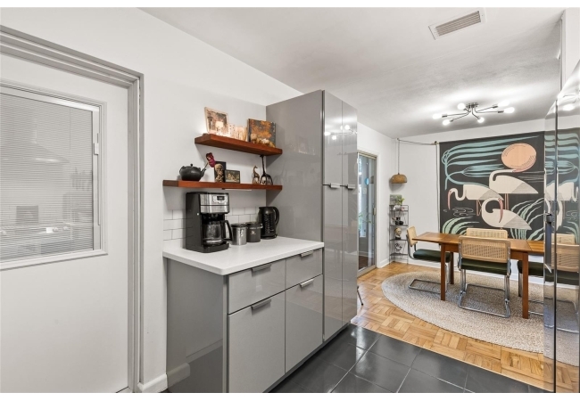 Step inside and fall in love with the gleaming parquet wood floors, open living spaces, and custom window treatments that set the tone for bright mornings or cozy evenings. The dining room flows into a designer kitchen complete with stainless steel appliances, hood range, custom cabinets, open wood shelving, and stylish countertops.