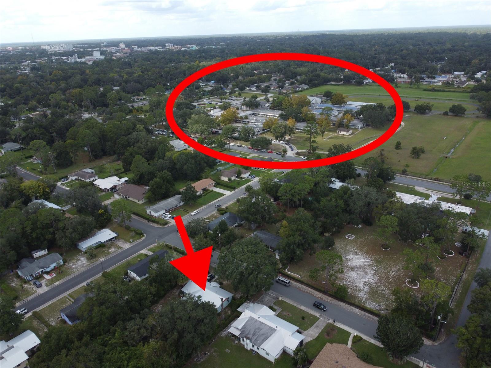 Discover this charming 4-bedroom, 2-bathroom home perfectly located in beautiful Gainesville, FL! This spacious residence offers a comfortable mix of tile, vinyl plank, terrazzo, and carpet flooring—making cleaning and maintenance a breeze. The split-bedroom floor plan ensures plenty of privacy for the primary suite, while the dedicated dining room and separate living room provide an ideal setup for family gatherings and entertaining guests. The large kitchen is a chef’s dream, offering ample space for cooking and meal prep. Sitting on nearly half an acre, this property provides plenty of room to relax, play, and entertain outdoors. Conveniently located less than 10 minutes from UF and Shands, and just a short walk from both the local elementary and middle schools, this home combines space, comfort, and unbeatable convenience. In the drone shots, you can see the arrows that show how close UF and Paynes Prairie is to this property. The drone shot with the arrow and circle show how close the public schools are. Don’t miss your chance to make this Gainesville gem your new home—call today to schedule your private tour!