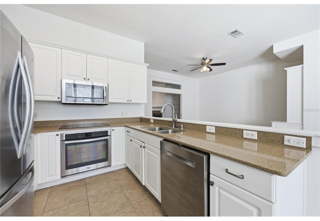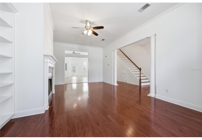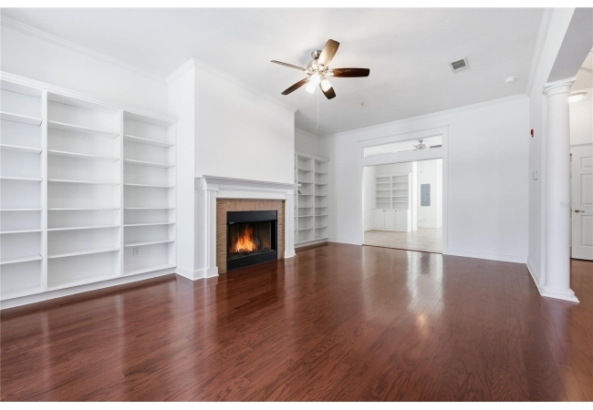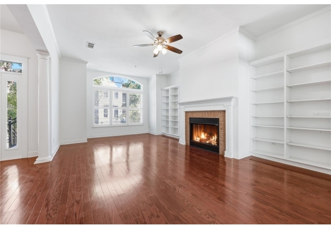 Welcome to upscale living in this stunning 3-bedroom, 2.5-bath, two-story condo that blends a beautifully designed space with comfort, and convenience. The spacious family room features a cozy fireplace, custom built-in shelving, and gorgeous wood flooring that enhances the home’s common spaces. The kitchen is a dream for both everyday living and entertaining, offering stainless steel appliances, granite countertops, a breakfast bar with seating, dining area, and an additional living space with more built-in shelving. Just off the kitchen, enjoy a roomy back porch—perfect for relaxing or hosting guests. Freshly updated with new paint throughout and carpet in the bedrooms. The home also features elegant plantation shutters on every window. The spacious primary suite boasts a walk-in closet, private balcony, and a luxurious en-suite bathroom with dual sinks and a generously sized shower. Two additional bedrooms provide ample space for family, guests, or a home office. Additional highlights include a one-car attached garage located in the basement with interior access, all within a private, gated courtyard, plus one additional designated parking space. Ideally located near schools, shopping, dining, and entertainment. The condo is less than 1.5 miles from the University of Florida—perfect for enjoying game days and all the amenities Gainesville provides. Don’t miss this rare opportunity to enjoy luxury living with unbeatable convenience!