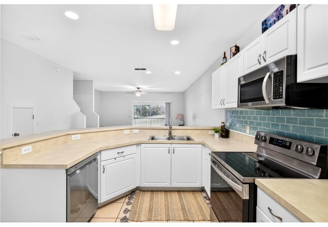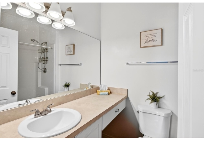 A sweet opportunity is now available in The Greens at West End! This delicately maintained home offers an open concept with a 2 story floor plan. As you enter you are greeted with the tall ceilings and radiant natural light from your screened in lanai. In the kitchen you will find all stainless steel appliances and no carpet on the first floor of the home. Upstairs has the spacious primary and spare bedrooms, both with their own full bathrooms. Laundry room is also on the second floor for easy access! Another feature on this home is that there is a built-in desk area for crafting, studies, or business. To top it off the roof is 2022, and the HVAC + Water heater is 2021. For the amenities, you have your own community pool, clubhouse, tennis courts and the community is fully gated. Come and see it today!