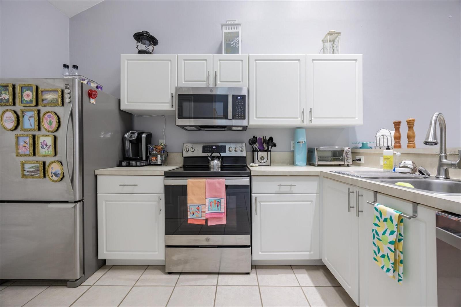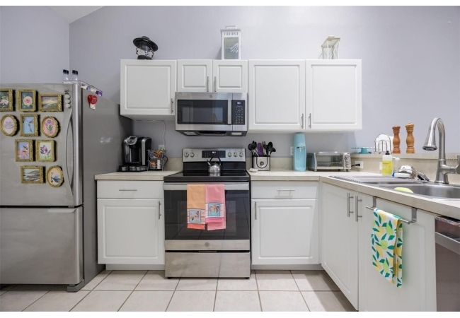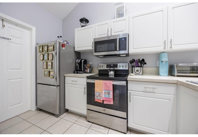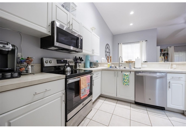 This beautifully updated condo with a spacious layout begins with a welcoming foyer that leads into a bright, open-concept kitchen featuring ample cabinet and counter space. The adjacent dining area flows seamlessly into a large living space, ideal for relaxing or entertaining, and opens to a private, screened-in patio.