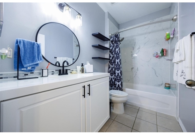 2023–2024 Guest Bathroom Upgrades: New toilet, vanity, sink, upgraded fixtures, and backsplash