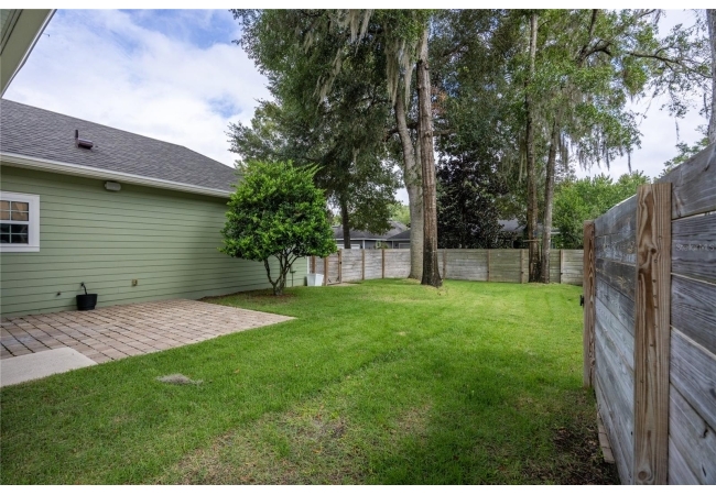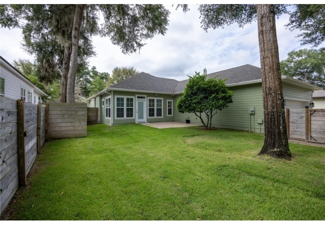 Welcome to this beautifully upgraded 3 bedroom 2 bathroom home in the tranquil community of Town of Tioga. This home is tucked away in Newberry's most sought-after, family-friendly neighborhoods. This residence offers the perfect blend of comfort, privacy, and convenience. Step inside to discover a thoughtfully designed layout featuring a spacious living room perfect for both relaxation and entertaining. This home features many upgrades with a brand-new roof (2025), additional updates completed in 2022 to include: refreshed color palette on all interior walls and kitchen cabinets, quartz countertops and elegant backsplash in kitchen, stainless steel GE appliances, vented stainless range hood, quartzite countertops in bathrooms, LVP flooring in all living areas, carpet in primary bedroom, light fixtures in master bath, kitchen, office, laundry room, and exterior surround sound in living room and exterior speakers on back patio, additional storage and modified existing cabinets to add more storage. The Trane HVAC system was replaced in 2019 and serviced by Liberty Air. The gas hot water heater is a commercial-grade unit and was replaced in 2018. A whole-house water filtration system (Osmosis Drinking Water System) features a line to the refrigerator for filtered water and ice. Gas connection available for gas range and grill/firepit on back patio. The home features an efficient split floor plan with modern light fixtures that enhance its traditional charm. The home has ample storage space provided by plenty of cabinets and built-ins throughout. There is a dedicated study with beautiful glass pocket doors off the front entrance and a sunroom that looks out over the lush fenced-in backyard. The primary bedroom features a walk-in closet and an en-suite bathroom with a step-in shower, large tub, and updated vanities with quartzite countertops. A laundry room off the garage with a newer Samsung washer and dryer. The open-concept floor plan seamlessly connects the cozy living area, kitchen, and dining area, making it great for everyday living and hosting. Situated on a tree-lined street, this home features a beautifully manicured yard with mature landscaping. With both curb appeal and a serene backyard retreat this home is a rare find in the Town of Tioga. With its serene location, abundant space, and versatile layout, this home is a rare find in the Town of Tioga. Don't miss the opportunity to make it yours. Town of Tioga offers many wonderful amenities, including a community pool, tennis/pickleball courts, basketball court, playground, soccer field, and a maintained walking pathway along the esplanade. Excellent neighborhood in a great school district, conveniently located near hospitals, highways, and shopping centers. Embrace the walkable lifestyle and venture to fantastic local restaurants such as Blue Highway Pizza, Local Provisions, and Cilantro Tacos, as well as medical offices and Gainesville Health and Fitness.