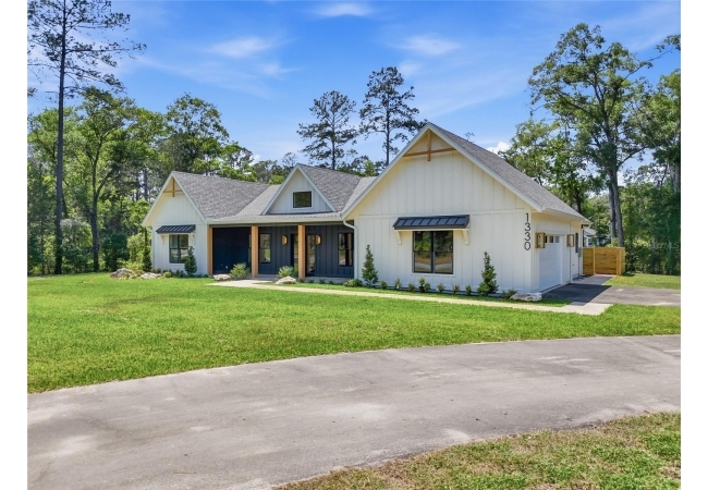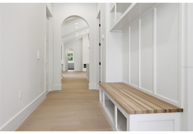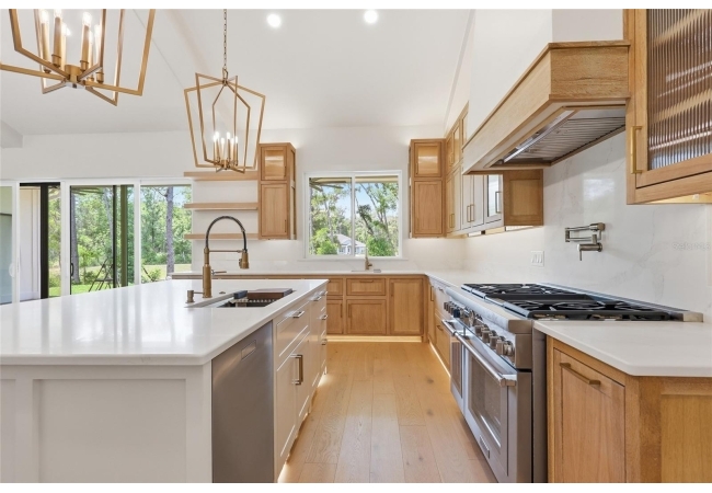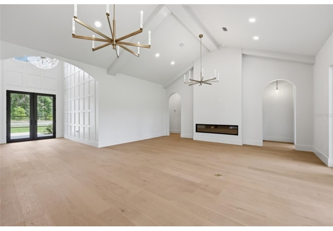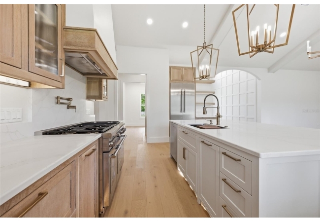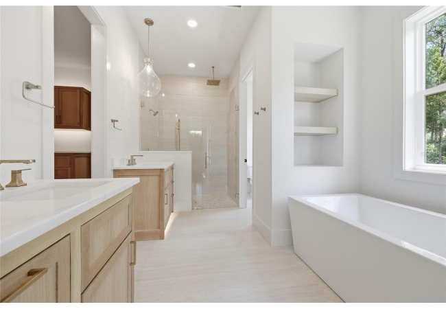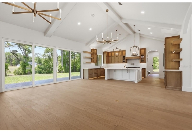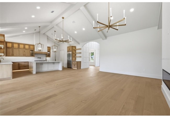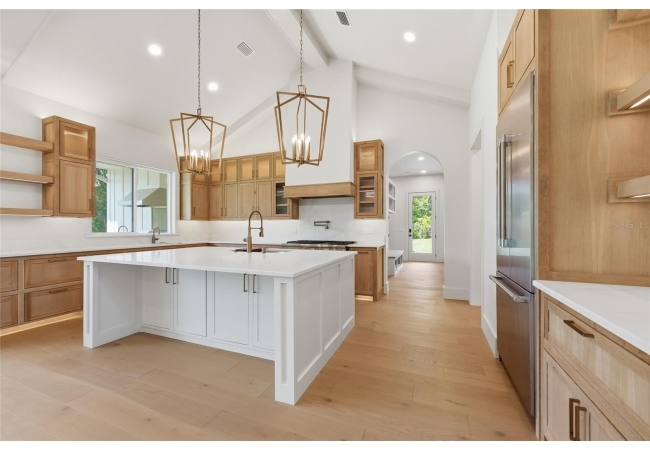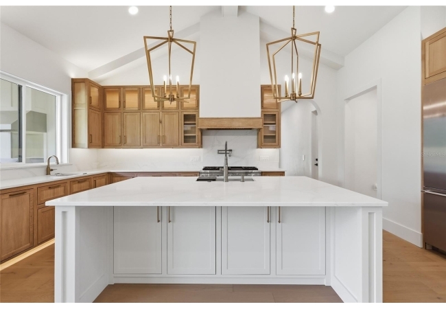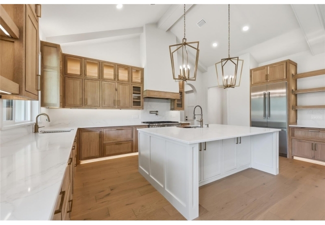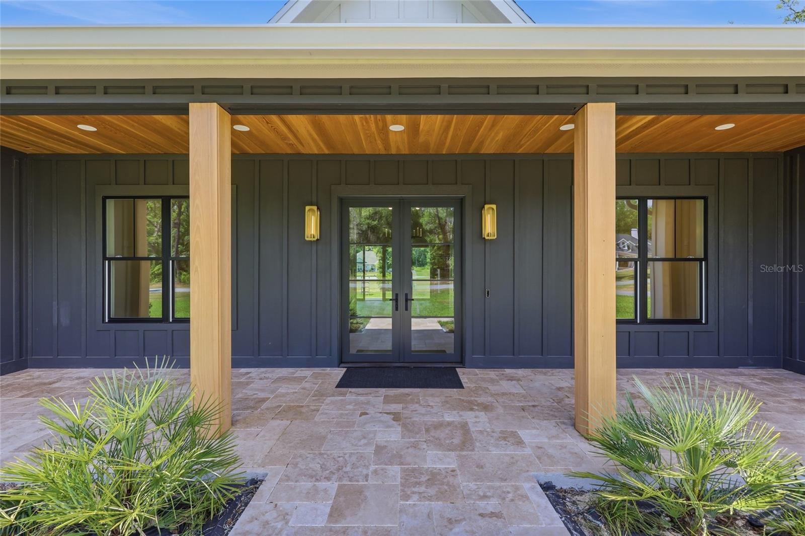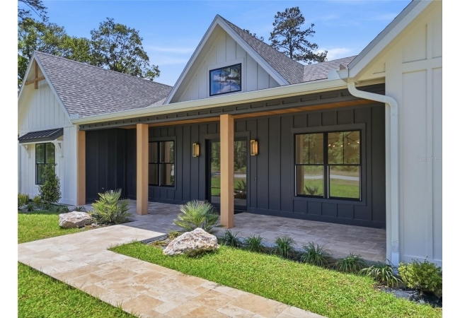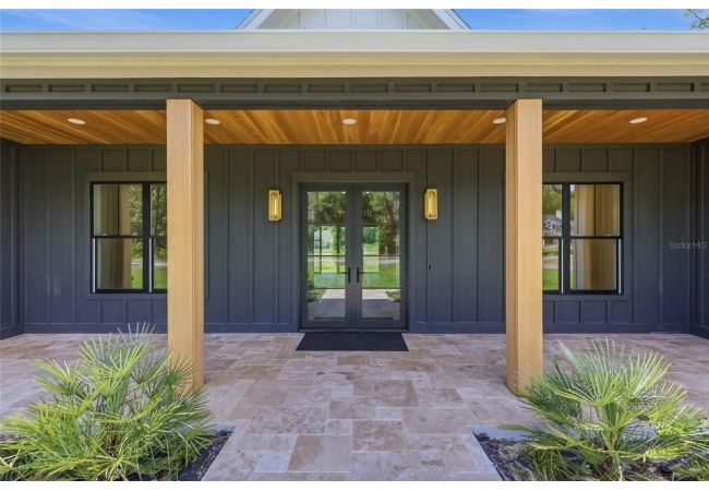 This brand-new custom-built residence offers 2,898 square feet of heated and cooled living space, with 4,248 total square feet under roof, and is thoughtfully designed for both everyday ease and elevated entertaining. The curb appeal makes an immediate impression with a travertine walkway, welcoming front porch, cedar-wrapped columns, and a cedar tongue-and-groove ceiling.