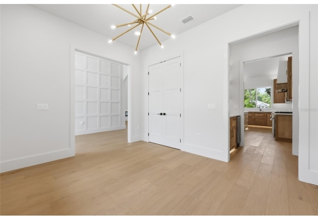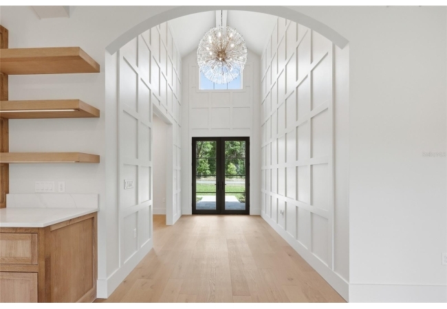 Step inside through a Pella front door into a stunning paneled foyer with soaring ceilings and statement lighting. Just off the entry, a flexible room with a closet offers incredible versatility—perfect as a fifth bedroom, office, formal dining space, sitting room, or even a private speakeasy-style retreat. The layout flows effortlessly, with a mudroom located off the side-entry garage and a half bath positioned nearby, ideal for future pool access. A spacious walk-in pantry is conveniently placed for unloading groceries, while a private guest wing or second primary suite features its own walk-in closet and ensuite bath for comfort and privacy.