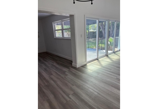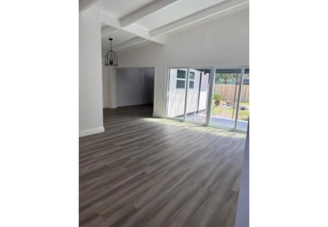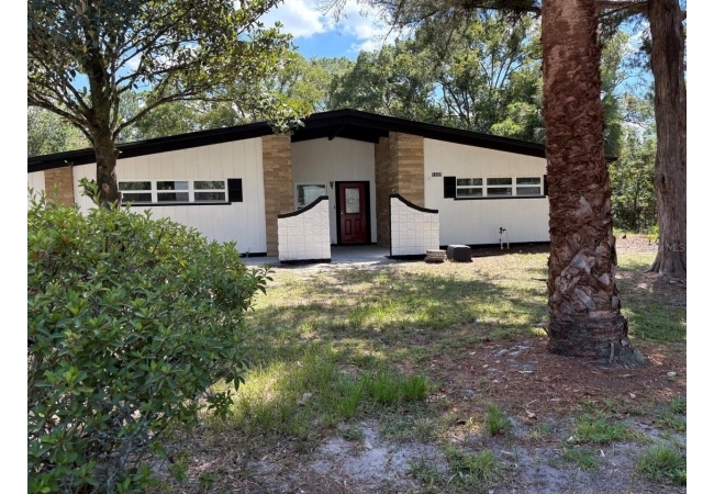 Beautifully updated 3-bedroom, 2-bath concrete block home offering over 1,700 square feet of living space. Recent renovations include a fully remodeled kitchen with brand-new appliances, high-end vinyl flooring throughout, and soaring cathedral ceilings that create a bright and open atmosphere. An extended sliding glass door provides abundant natural light and easy access to the spacious backyard. The primary suite features a new walk-in shower, while the home is further enhanced with a brand-new roof for peace of mind. Outdoor living is a highlight with a covered porch and awning—perfect for summer cookouts or relaxing with friends. Situated on a generous lot in a quiet Gainesville neighborhood, this property combines modern upgrades with a comfortable, functional layout.