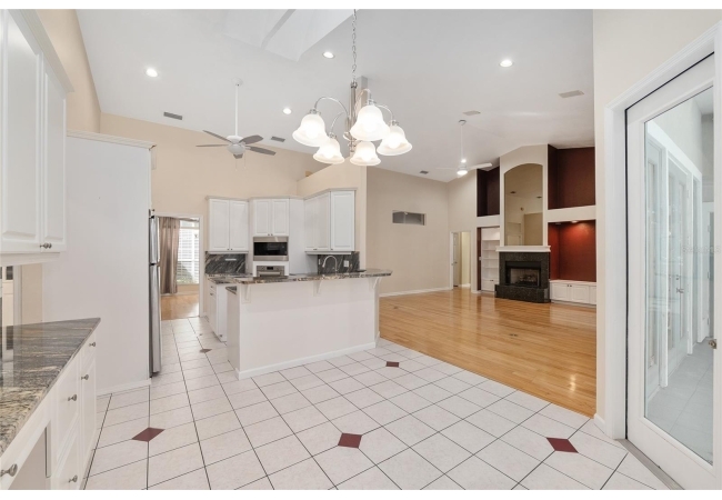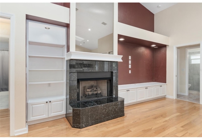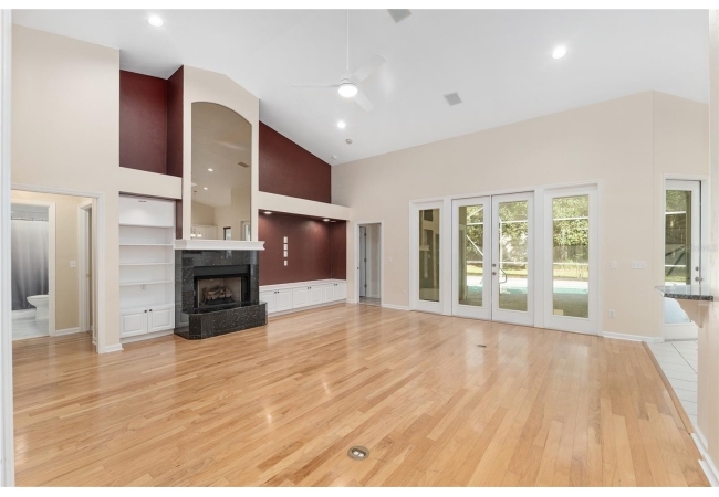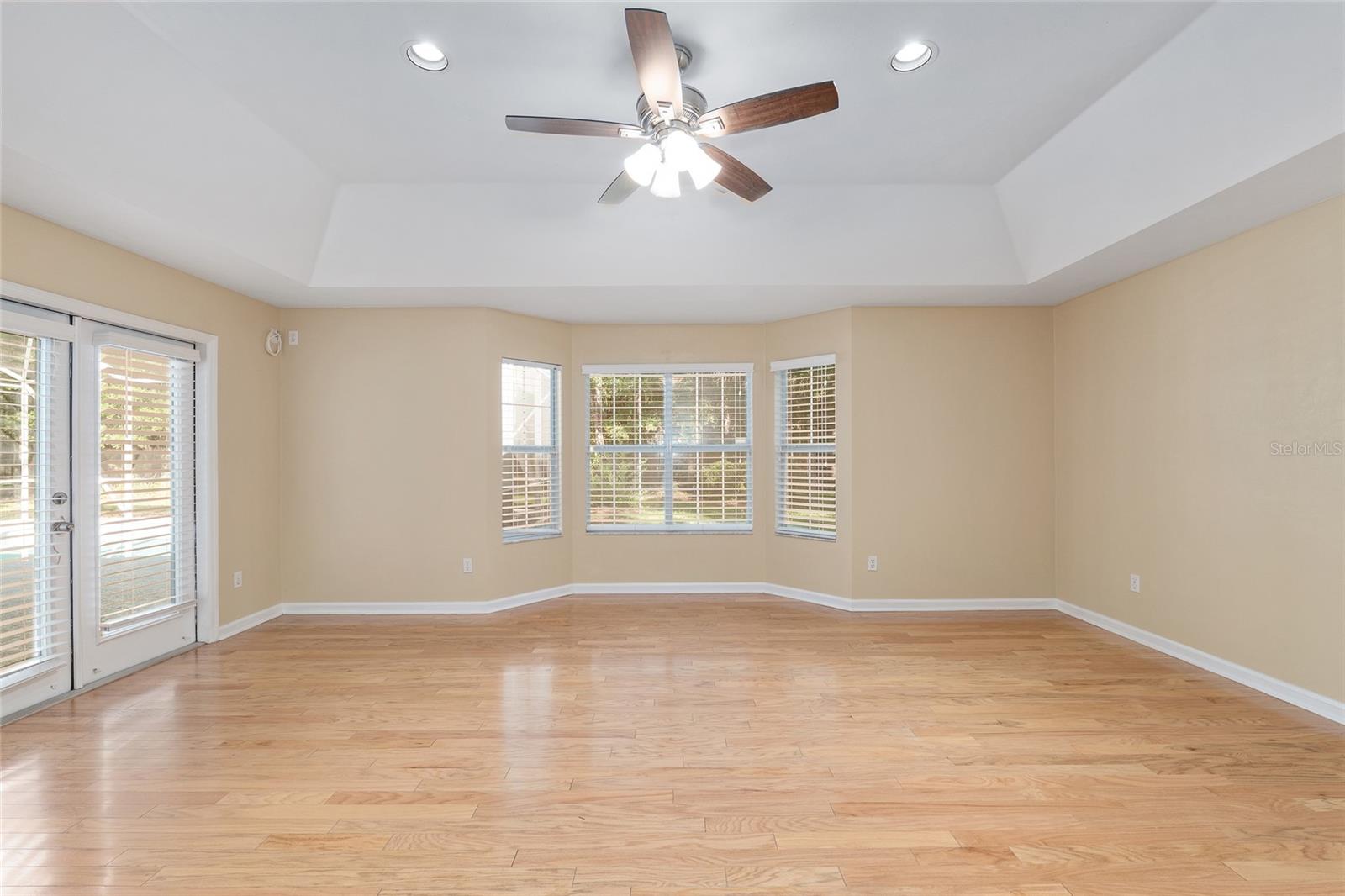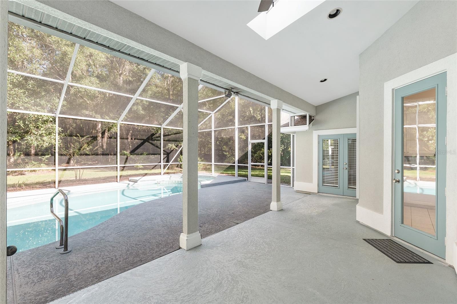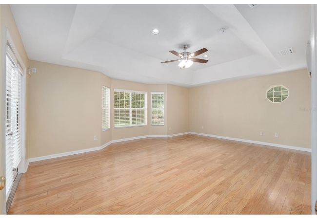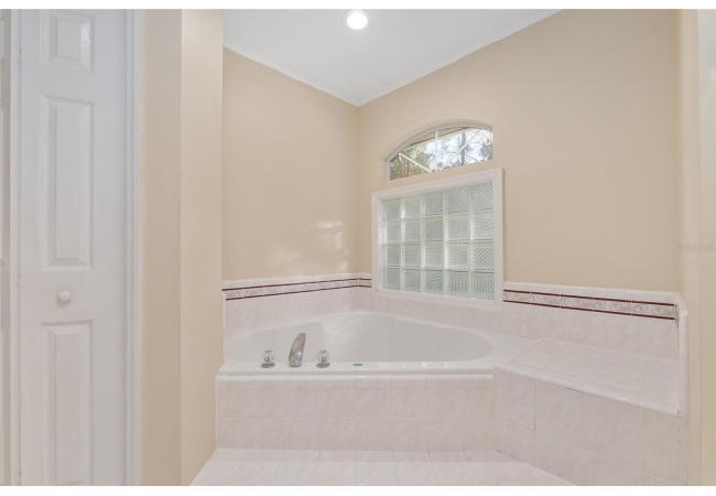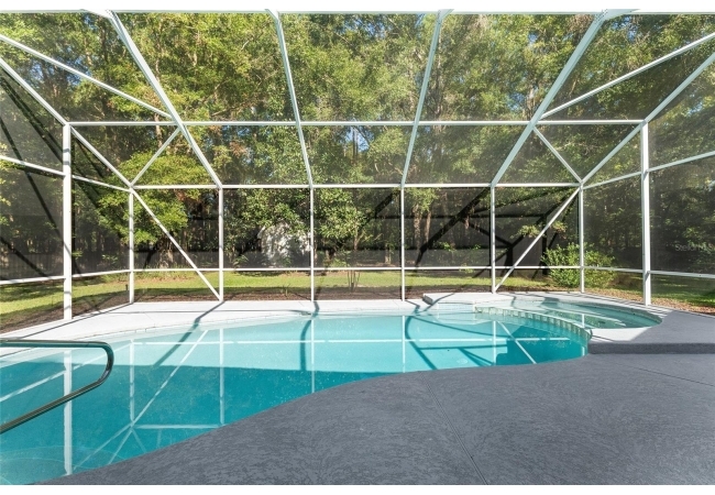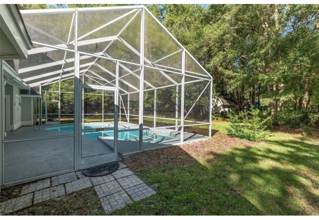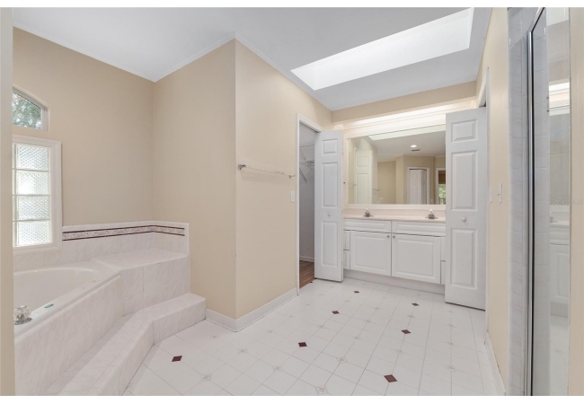 The spacious master suite is a true retreat, complete with a bay window, tray ceiling, and French doors that open to the fully screened, heated pool and spa. The remodeled bathrooms and well-maintained interiors reflect pride of ownership throughout.