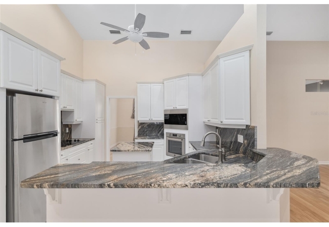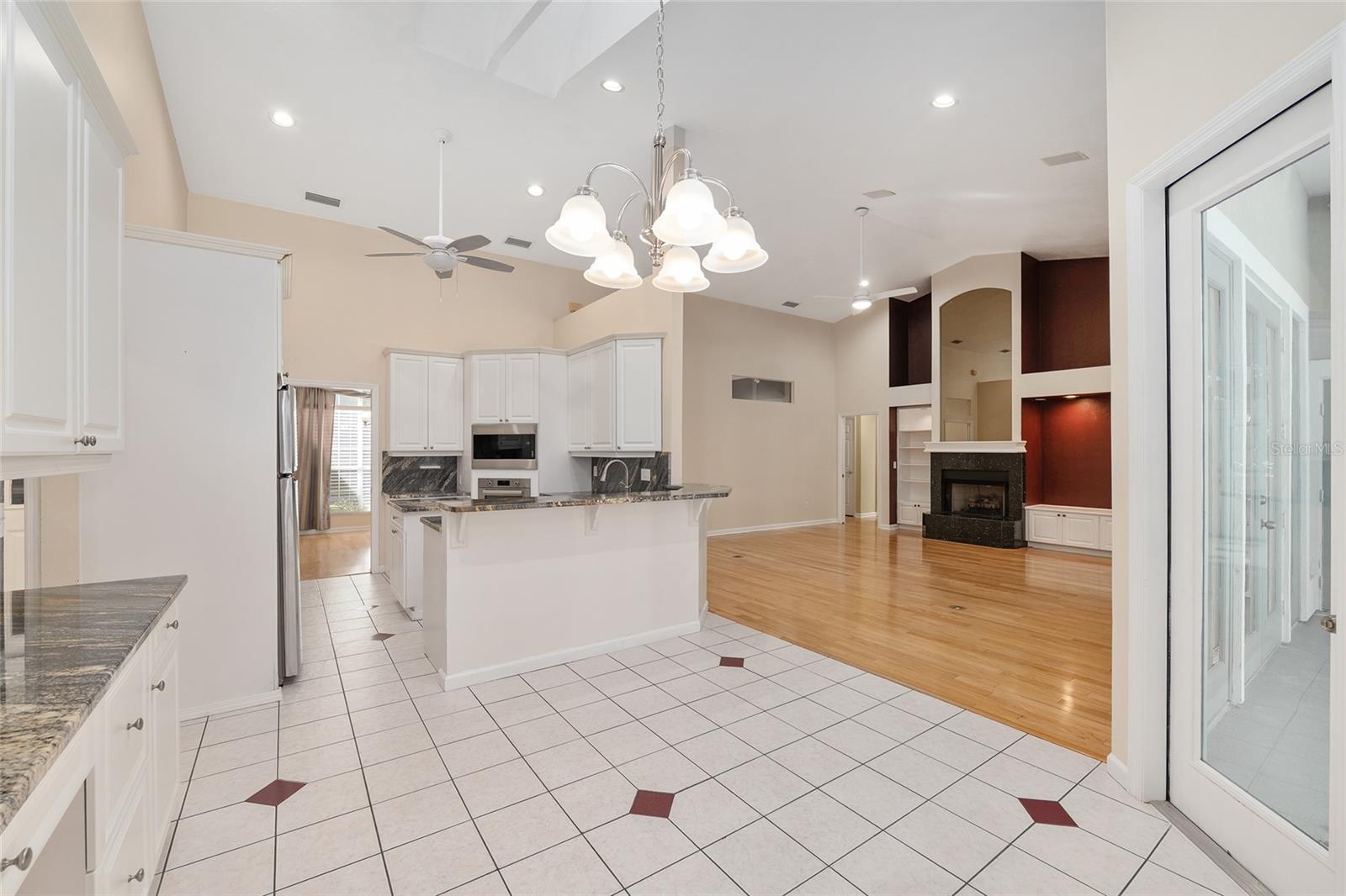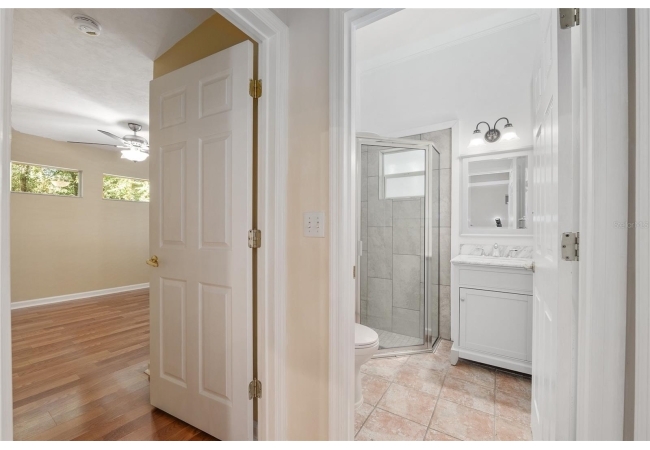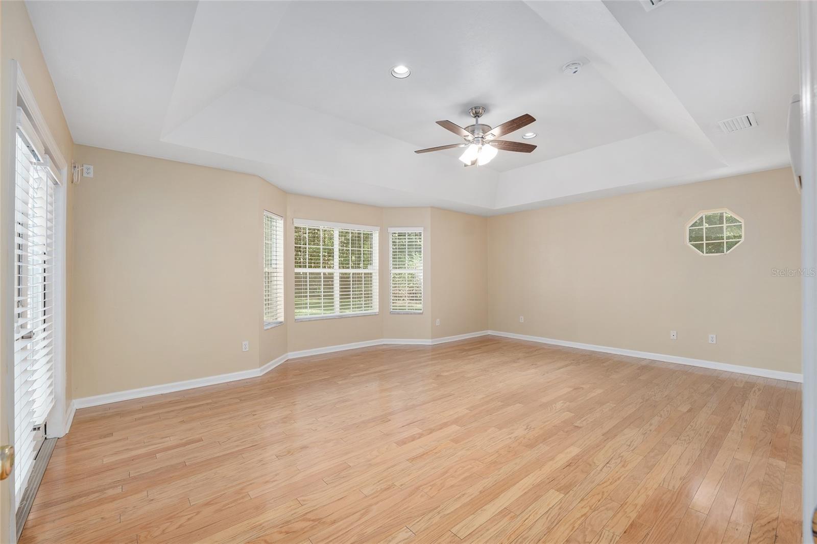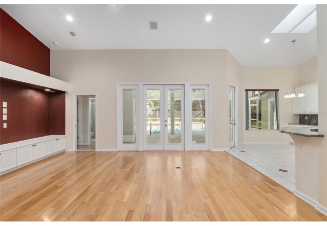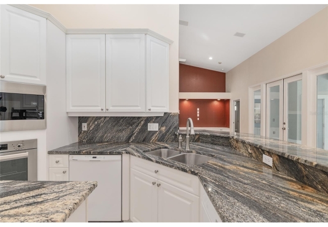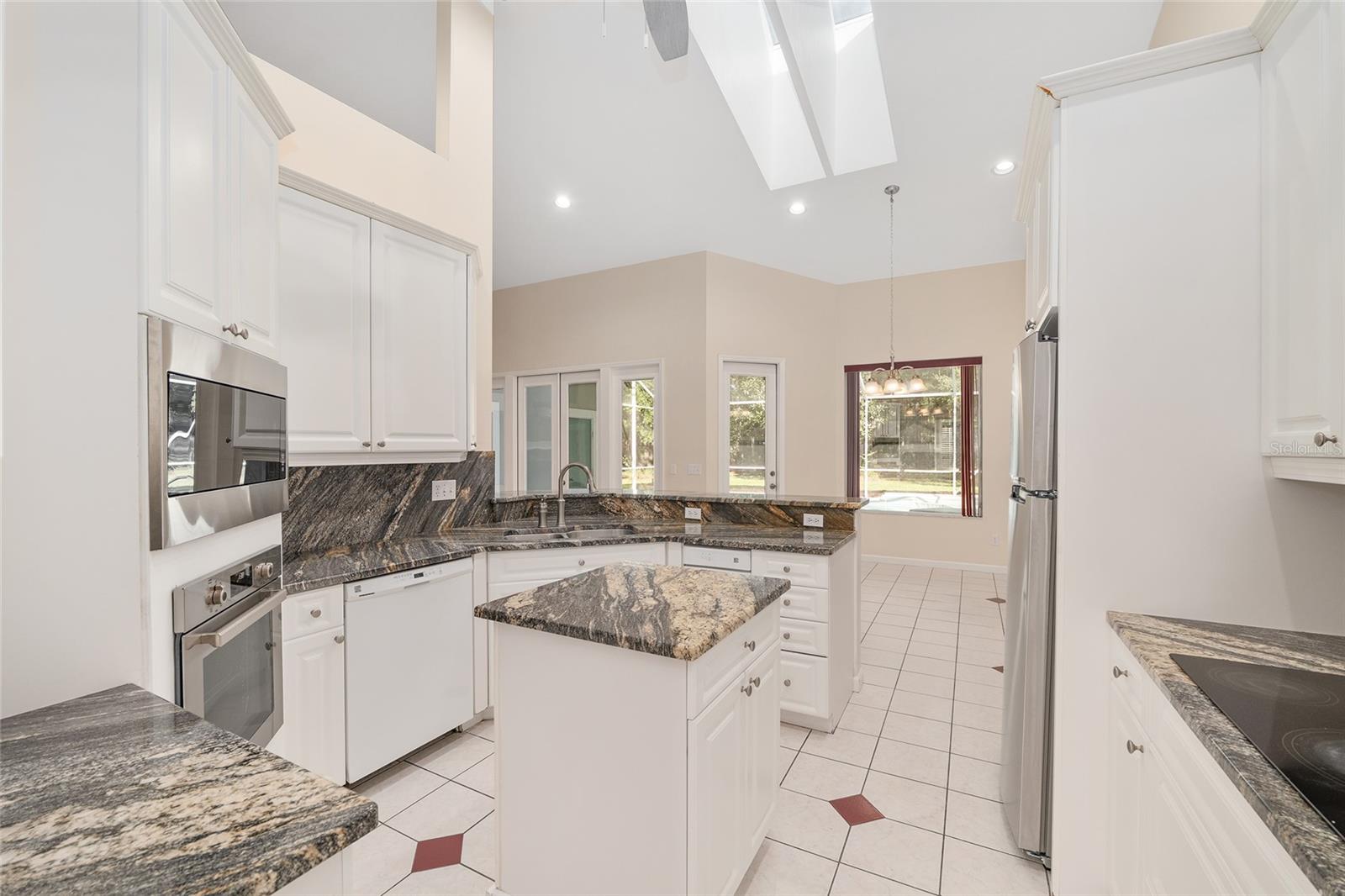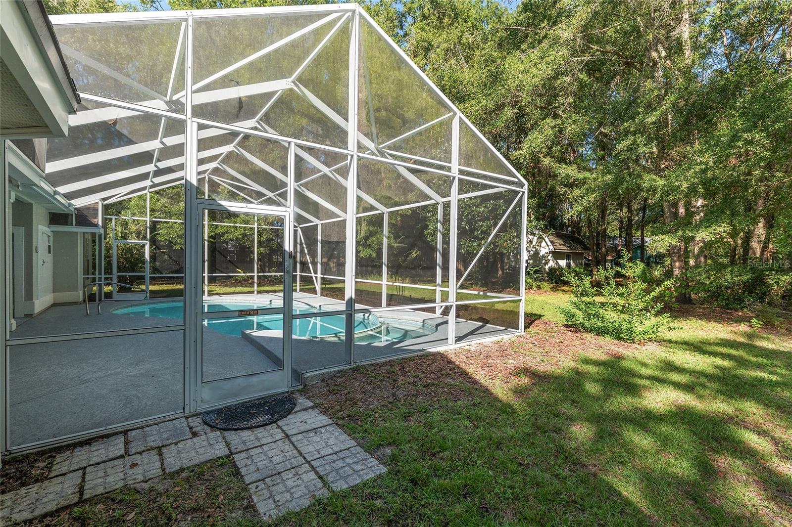 The spacious master suite is a true retreat, complete with a bay window, tray ceiling, and French doors that open to the fully screened, heated pool and spa. The remodeled bathrooms and well-maintained interiors reflect pride of ownership throughout.