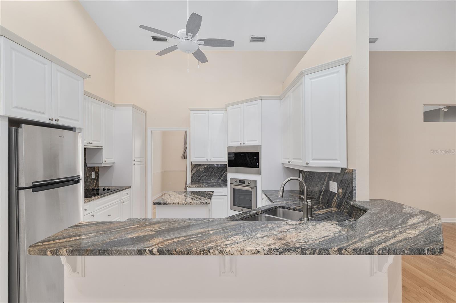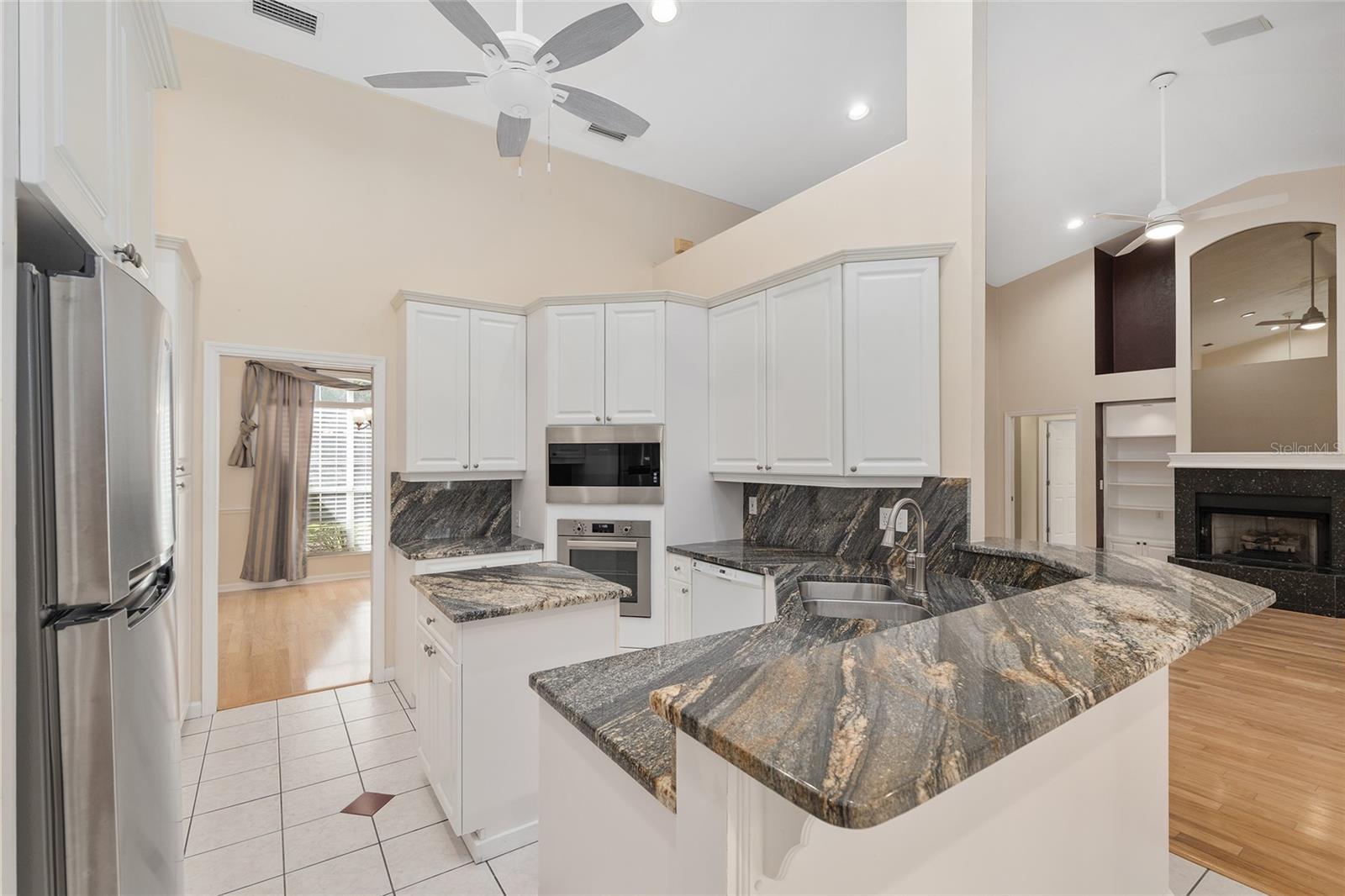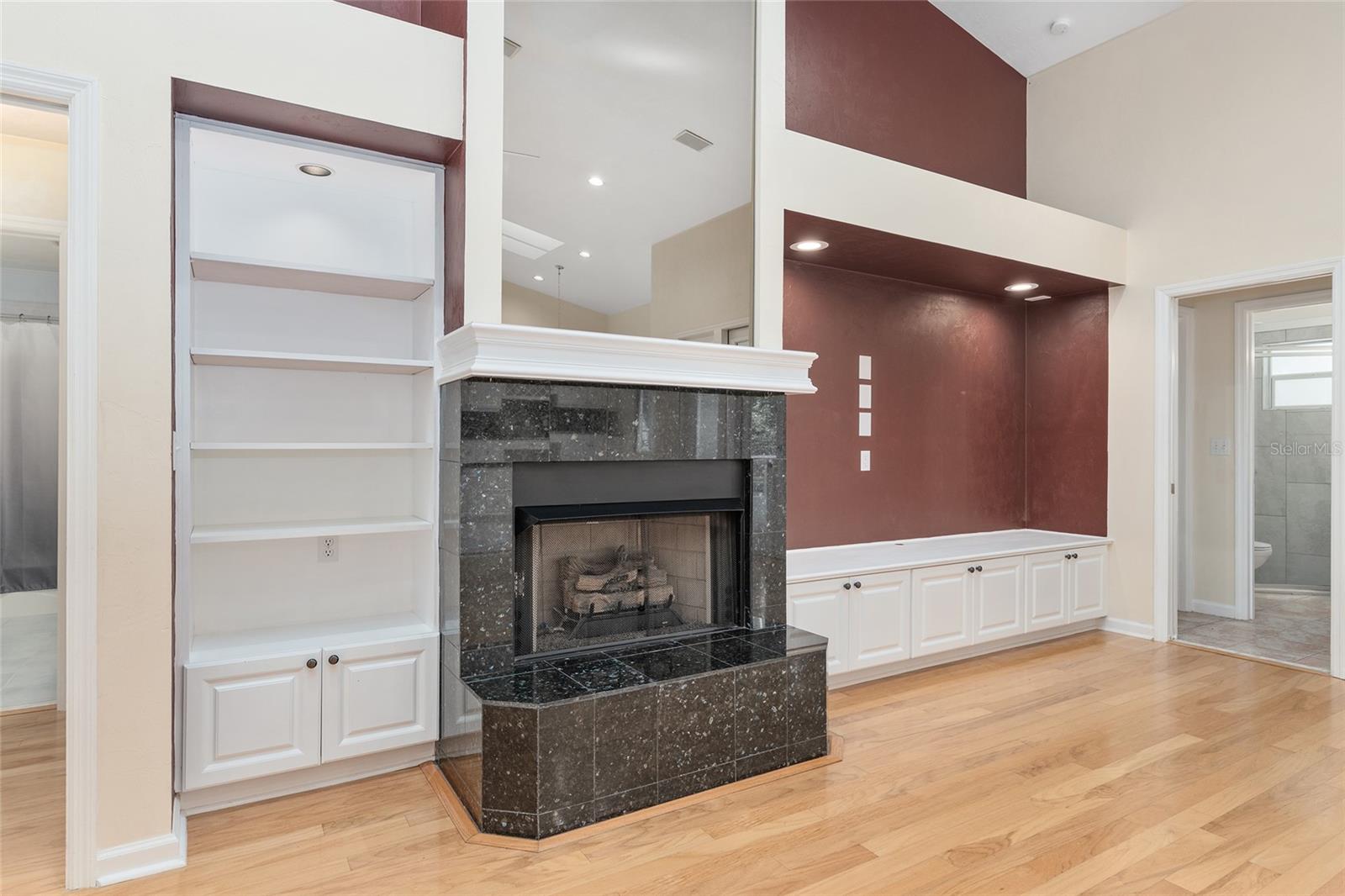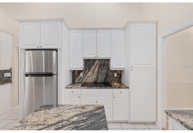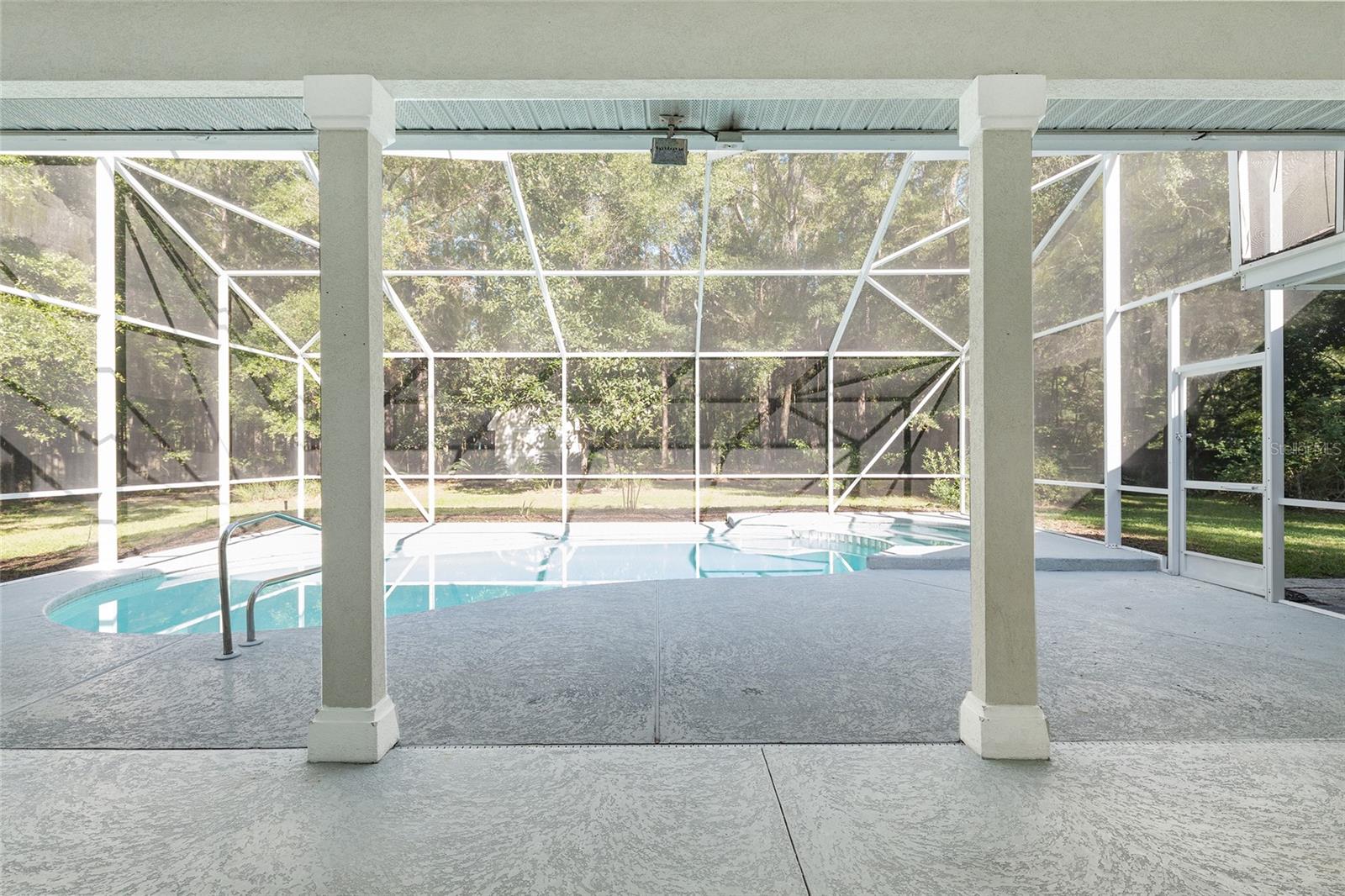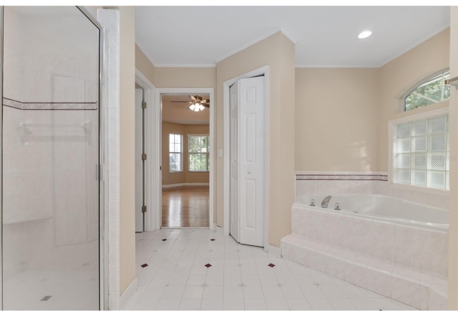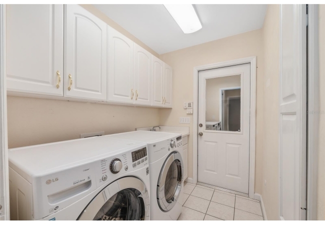 The spacious master suite is a true retreat, complete with a bay window, tray ceiling, and French doors that open to the fully screened, heated pool and spa. The remodeled bathrooms and well-maintained interiors reflect pride of ownership throughout.
