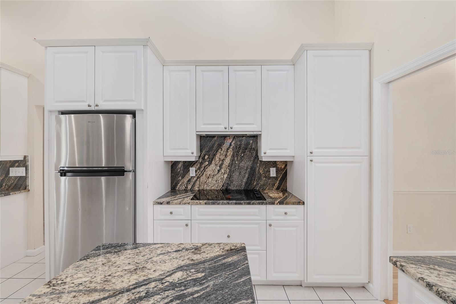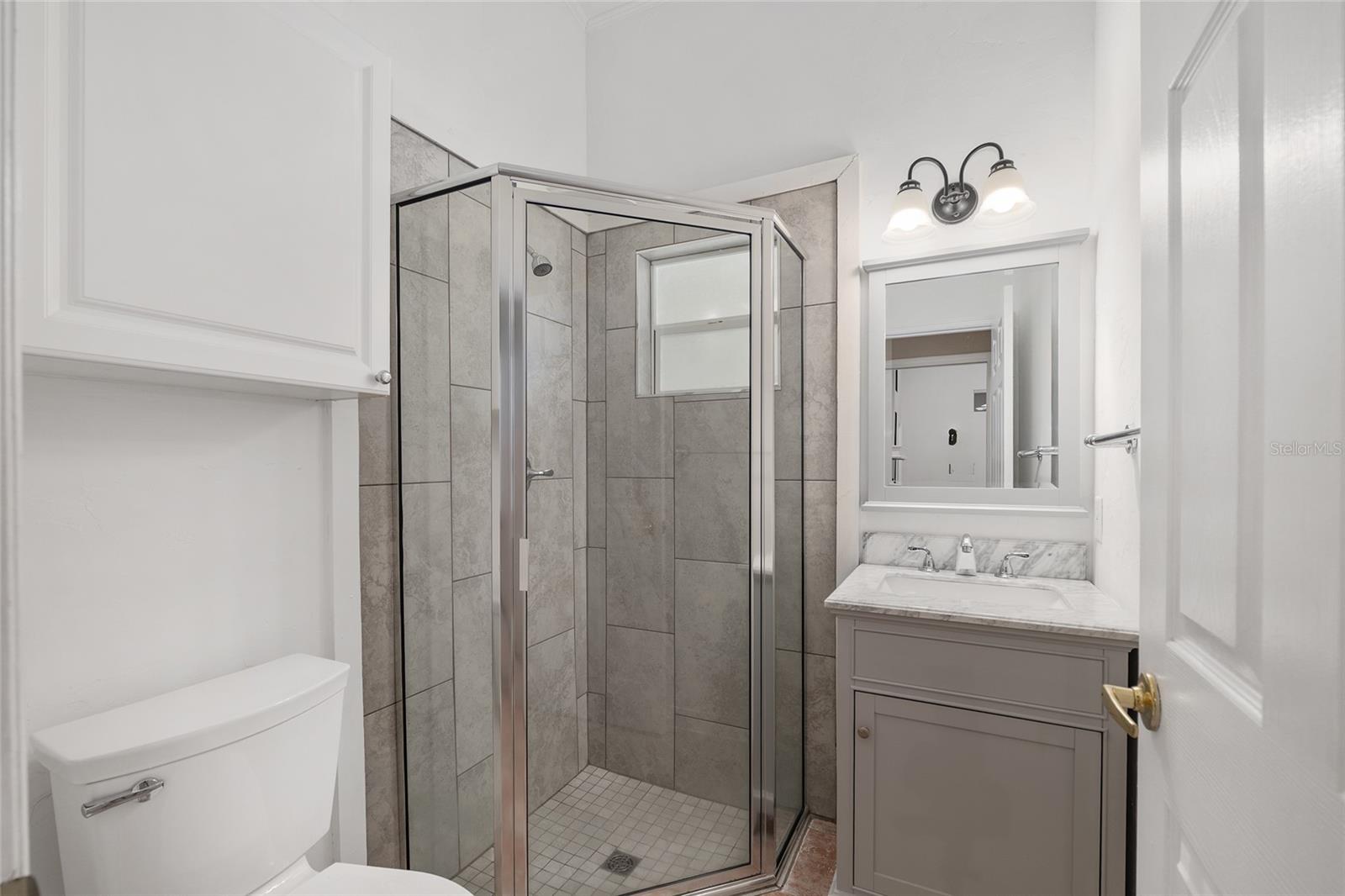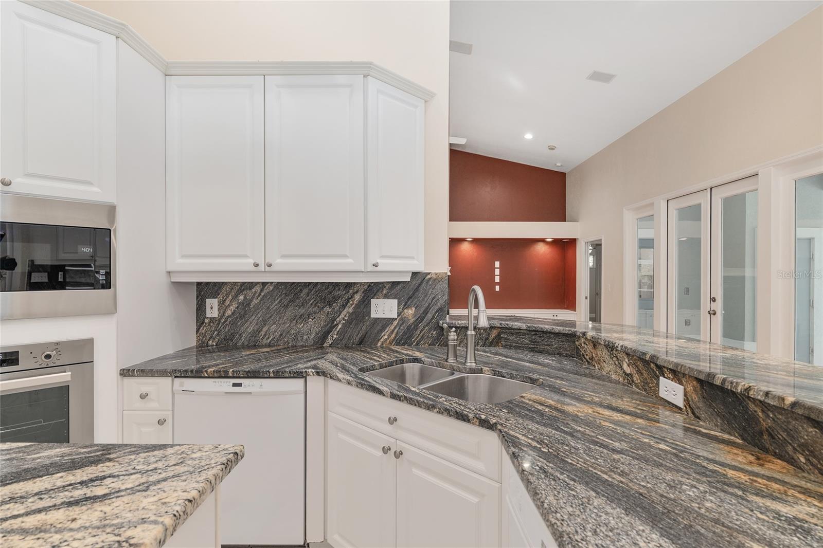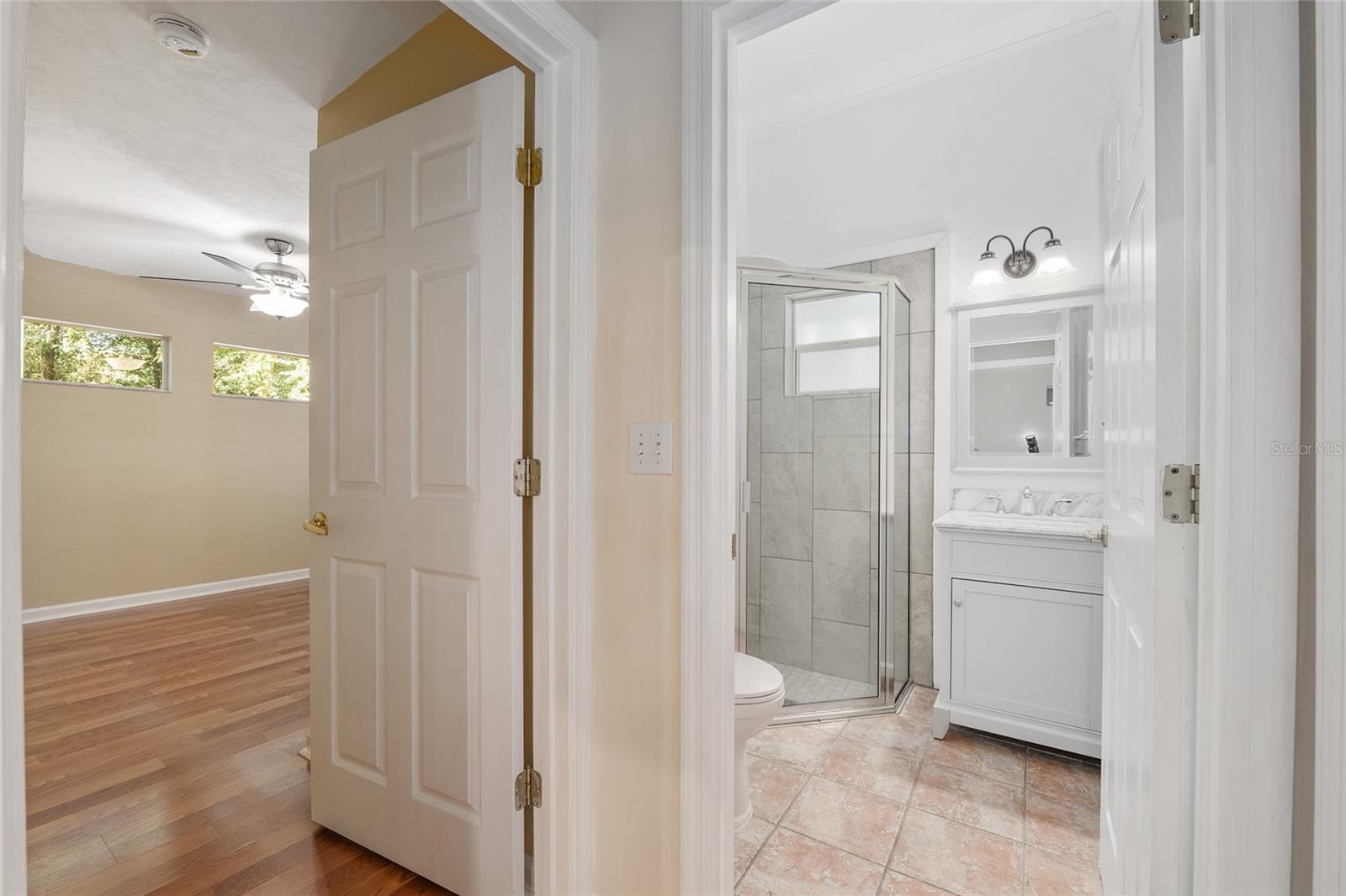 The spacious master suite is a true retreat, complete with a bay window, tray ceiling, and French doors that open to the fully screened, heated pool and spa. The remodeled bathrooms and well-maintained interiors reflect pride of ownership throughout.