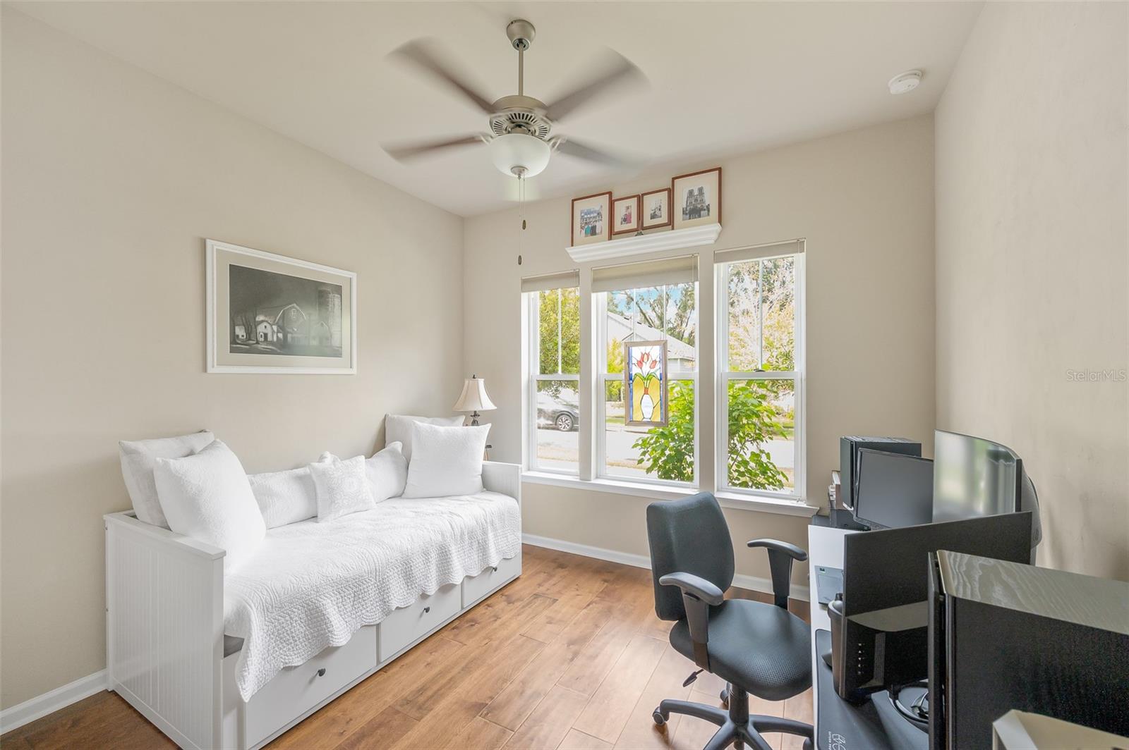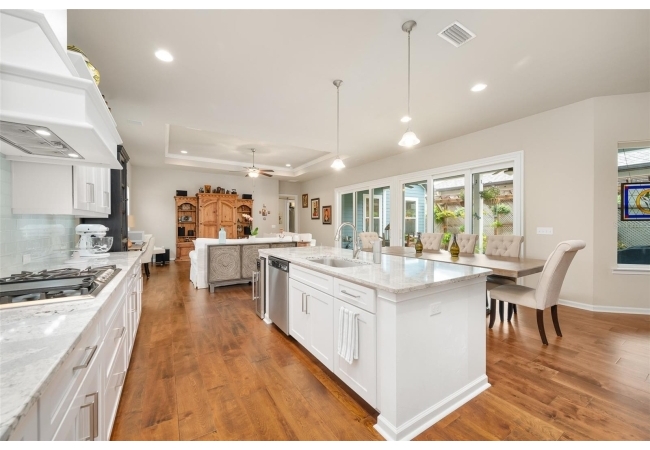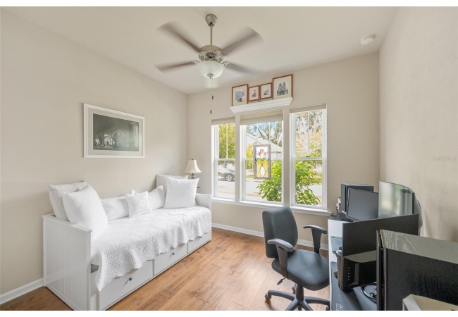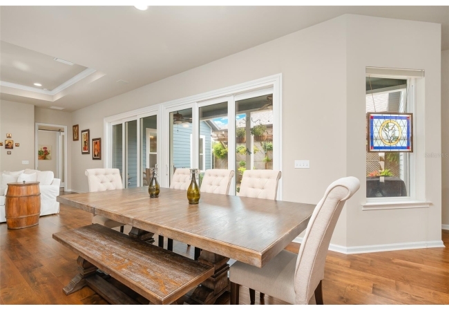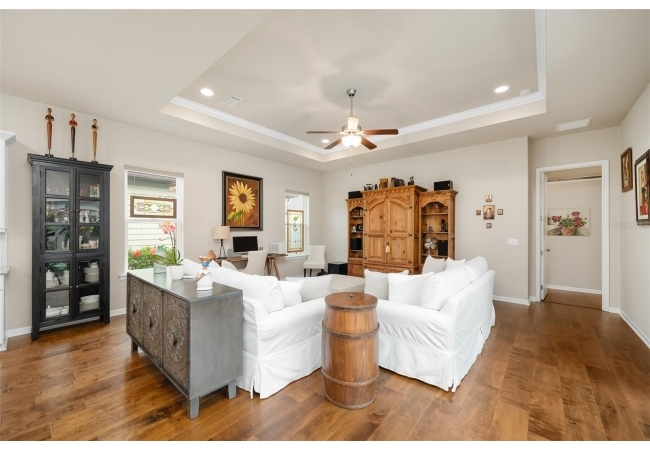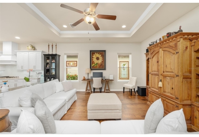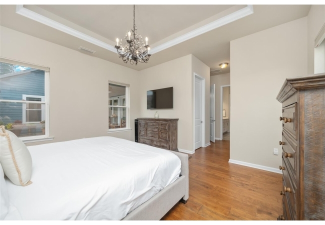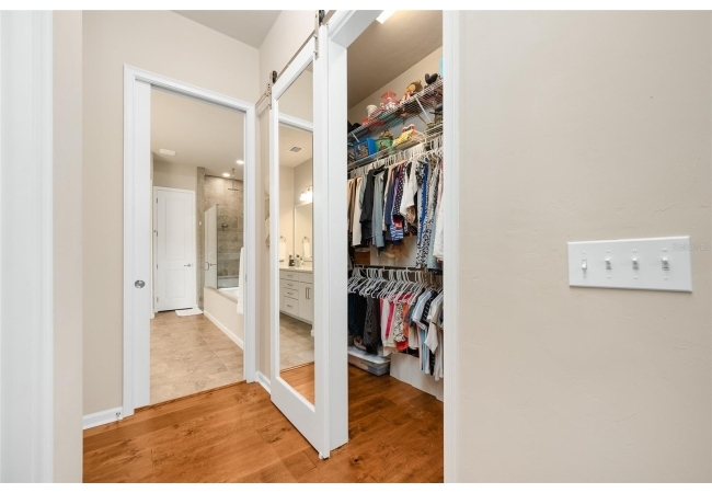 Imagine stepping into this home of pure elegance. This home features large 3 bedrooms, 2 1/2 baths, all sprinkled with all these gorgeous upgrades and premium real wood flooring that just shine. On the outside, its like a little slice of paradise once you open massive sliding doors to a large porch area with beautiful pavers and with lush greenery and flowers. As you enter to the house you will see to the right a premium 8-foot Barn Door with stainless steel hardware which will lead you to 2 bedroom, 1 bath, private area. The open kitchen has gorgeous quart counters, premium shelving, custom build island with under cabinet led lighting and built in wine cooler. In the laundry high end LG washer and dryer with premium custom-made shelving. The family room has crown molding with high quality speakers installed in ceiling for surround sound. The master bedroom has premium real wood flooring and 2 walk in closets with complete shelvings, one of them with a beautiful tall barn door. Master bath has a new linen closet with a bathtub. This place is also super close to the Town of Tioga, Publix, Starbucks and restaurants. It's definitely ready to charm the next homeowner!