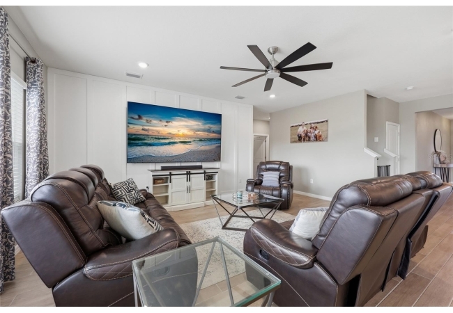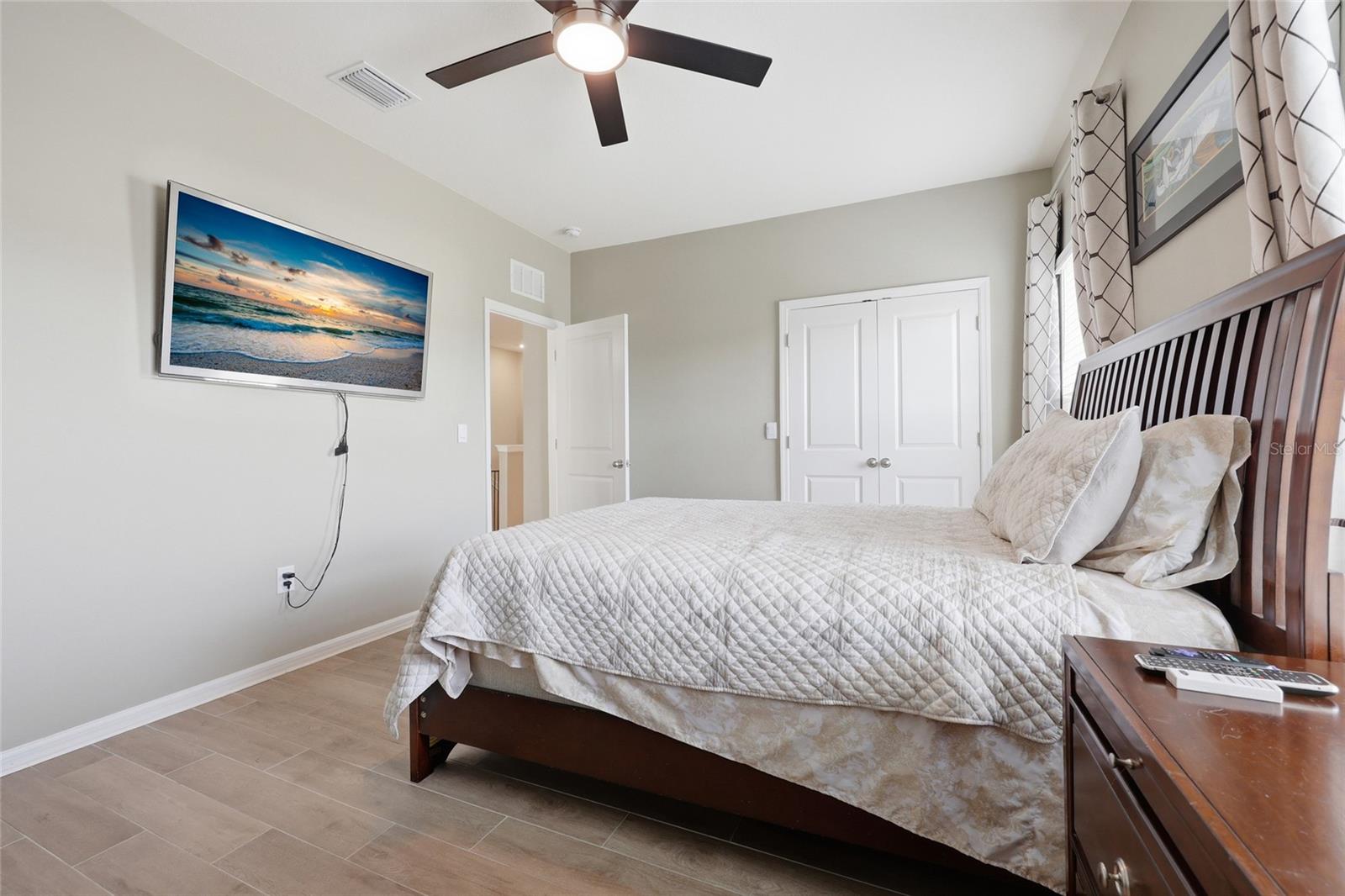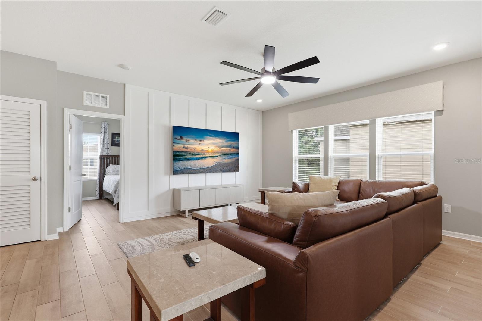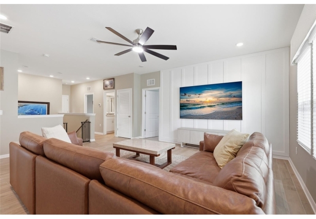 Upstairs, a secondary living space provides the perfect hangout or media room, complete with its own storage closet. The generously sized secondary bedrooms are sure to impress with their space and flexibility.