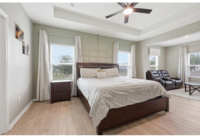 Additional highlights include smart home technology with Safe Haven integration, ceiling fans in every room, upgraded plumbing fixtures, fresh interior paint, and stylish window treatments and drapery throughout.