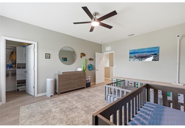 The chef’s kitchen is the heart of the home, perfect for hosting and entertaining, while the thoughtfully designed butler’s pantry with custom shelving keeps everything organized and within reach. The spacious primary suite offers a versatile bonus area ideal for a sitting room, nursery, or extra office space. The oversized primary closet features custom shelving for optimal storage.