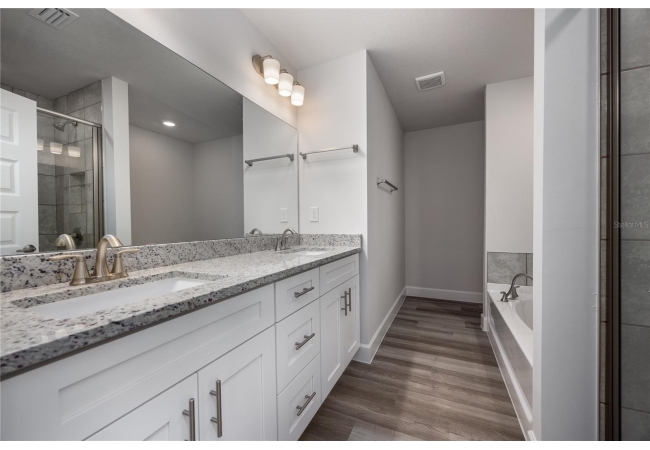 The primary suite includes a large walk-in closet, a granite double-sink vanity, and a tiled shower. Additional highlights include energy-efficient HVAC, LED lighting, black finishes, and a built-in pest defense system. Experience the perfect blend of quiet country living and everyday convenience at Kirkland Farms!