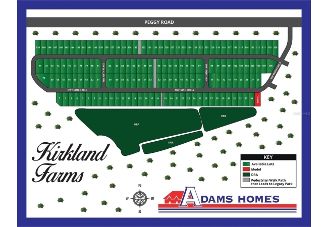 Under Construction. Be among the first to call the brand-new community of Kirkland Farms home! This new neighborhood features a direct walking path to Legacy Park, offering a playground, disc golf course, multipurpose facility, and community events like 4th of July fireworks and local concerts. Located less than a mile from Main Street in downtown Alachua, this home provides easy access to shopping, dining, and entertainment, with quick routes to Gainesville, High Springs, and Lake City via US-441 and I-75.