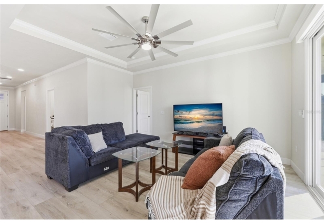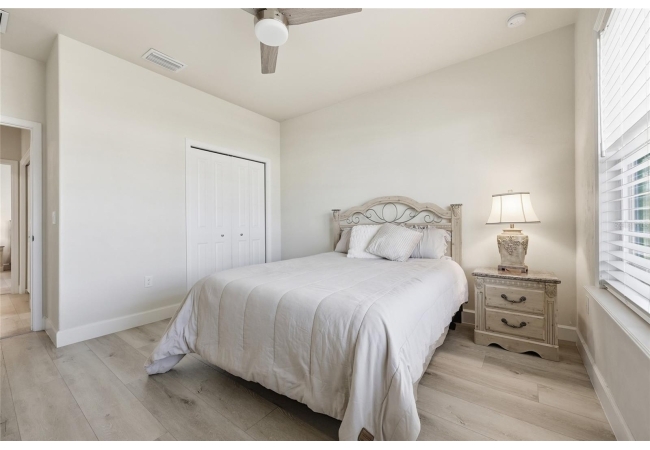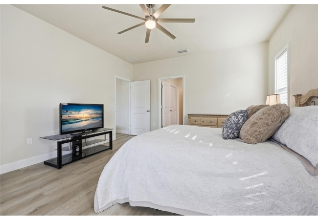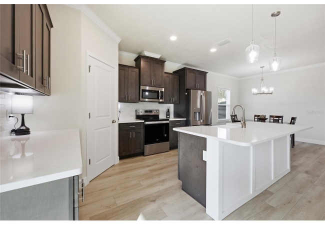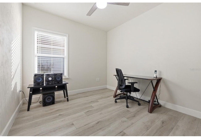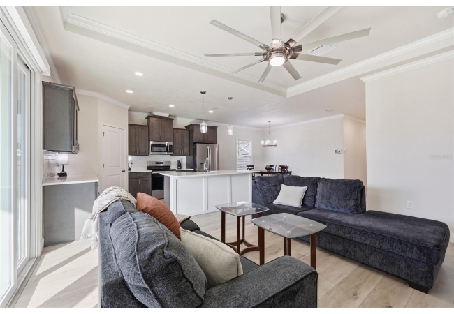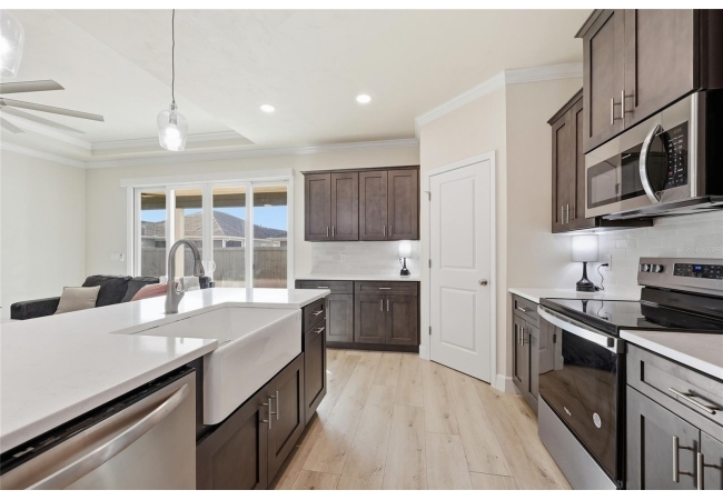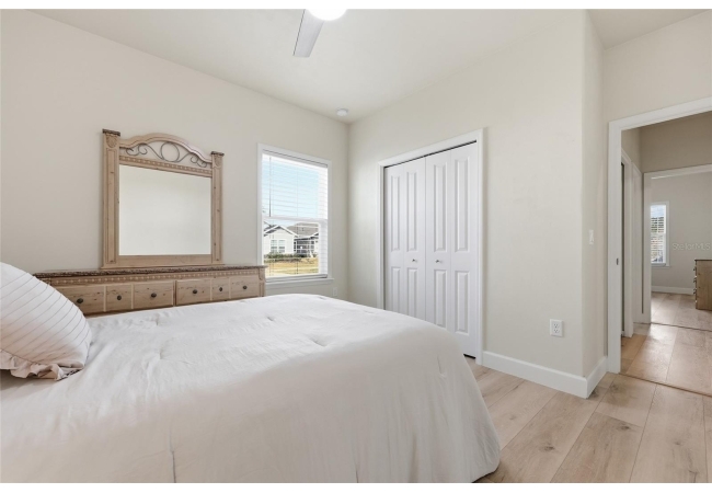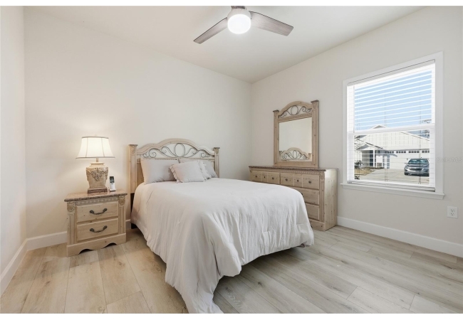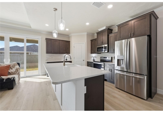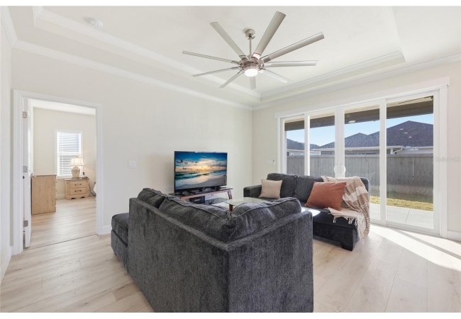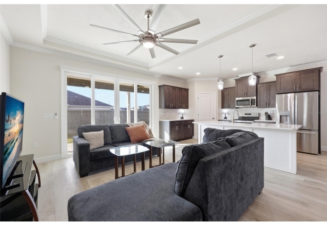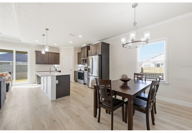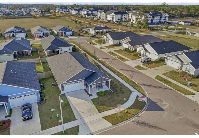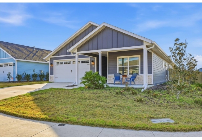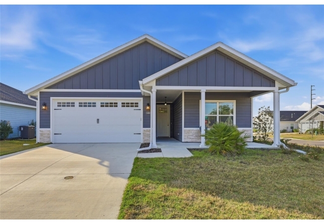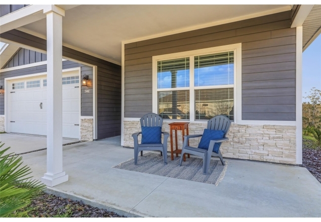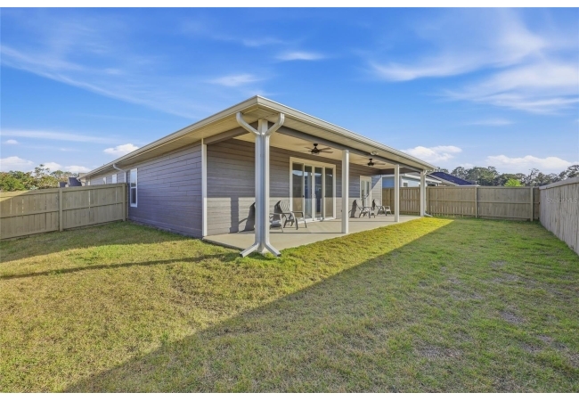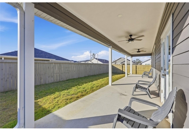 Beautifully appointed, nearly new 4 bedroom, 2.5 bath corner lot home with an airy open floor plan, with 9 foot ceilings throughout and thoughtful upgrades! Step inside to bright, connected living spaces that flow seamlessly into a stylish kitchen featuring modern, shaker, soft-close cabinets, quartz countertops, stainless steel appliances, a spacious pantry, and plenty of room to gather. The dining room is super spacious, perfect for entertaining and large gatherings! The bedroom layout is a true standout with a three-way split plan, offering privacy and flexibility for guests, work-from-home, or multi-generational living. The primary suite will be your own personal retreat with a super spacious walk-in closet and an ensuite bath showcasing a luxurious walk-in shower, dual vanities and a private water closet. No carpet in this home, just tile in the bathrooms and luxury vinyl plank in the rest of the home. Just off the garage, you’ll love the custom built drop zone—the perfect everyday landing spot for backpacks, shoes, and keys. Enjoy Florida living year-round with large covered porches in both the front and back, plus a fully fenced backyard—ideal for pets, play, and outdoor entertaining. Another upgrade is the remote controlled luxury motorized blinds over the sliding French doors with sidelights, adding both convenience and style. Owner is open to providing home warranty. Grand Oaks is known for its central location, community pool, playground, and sidewalks all with the bonus of no CDD. You’ll also enjoy easy commutes to University of Florida, UF Health/Shands, and the VA Medical Center. The home is less than a mile from Oak Hall School and it is zoned for Gainesville's most highly sought-after K-12 public schools! Call today to schedule your private tour!
