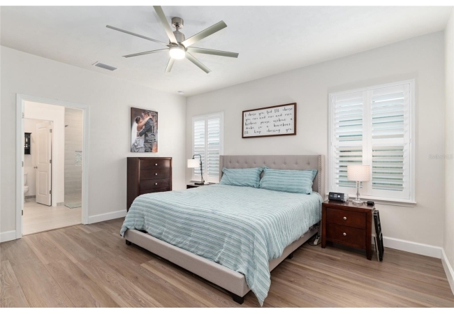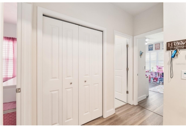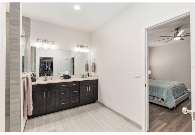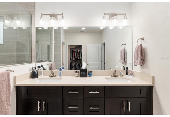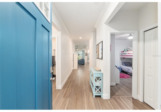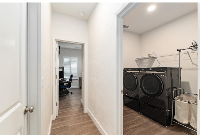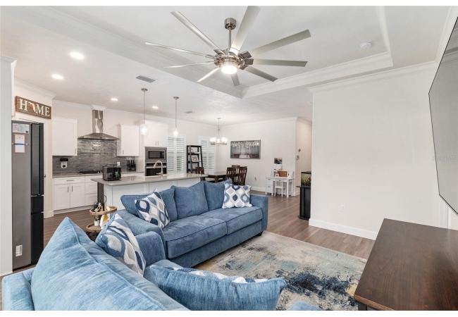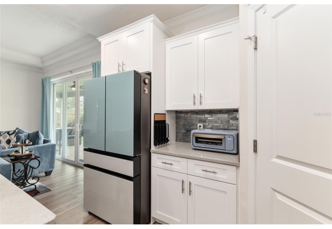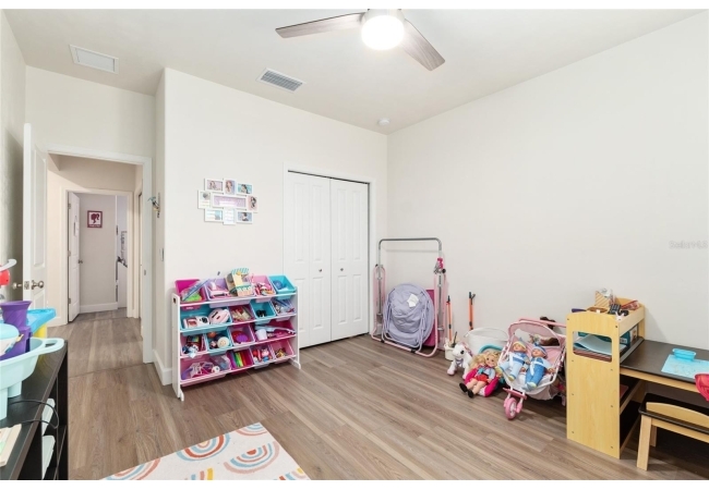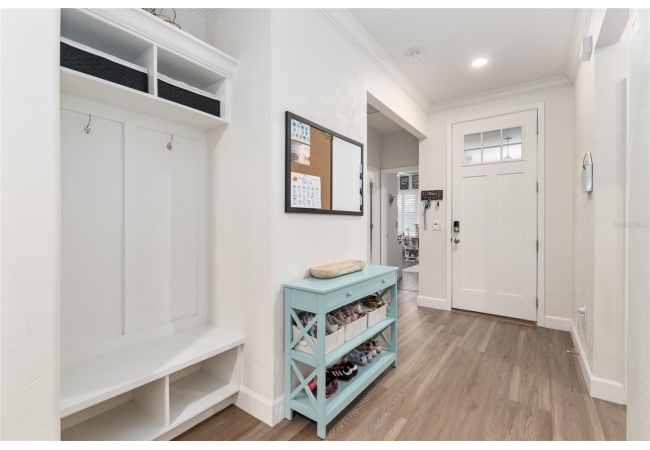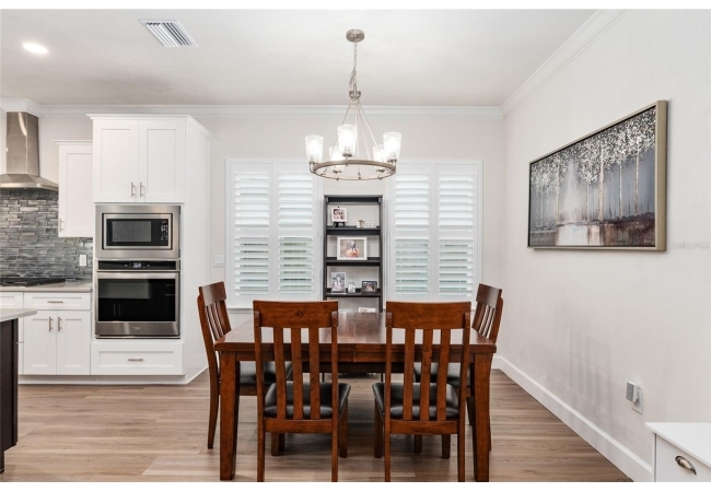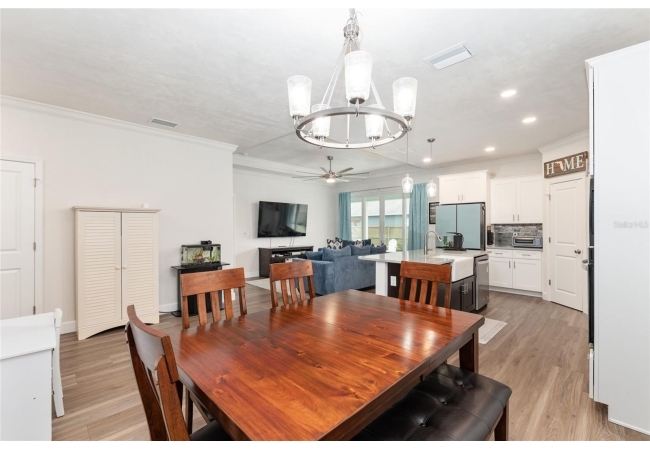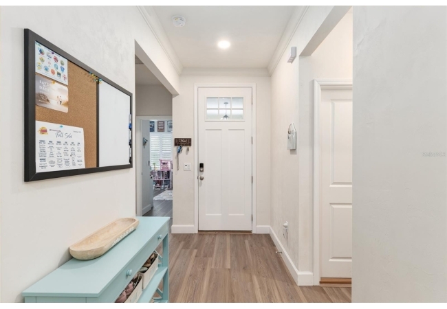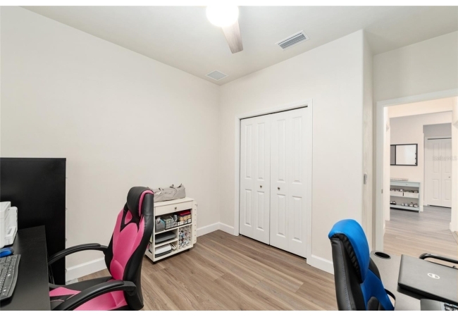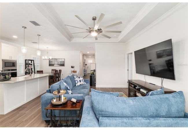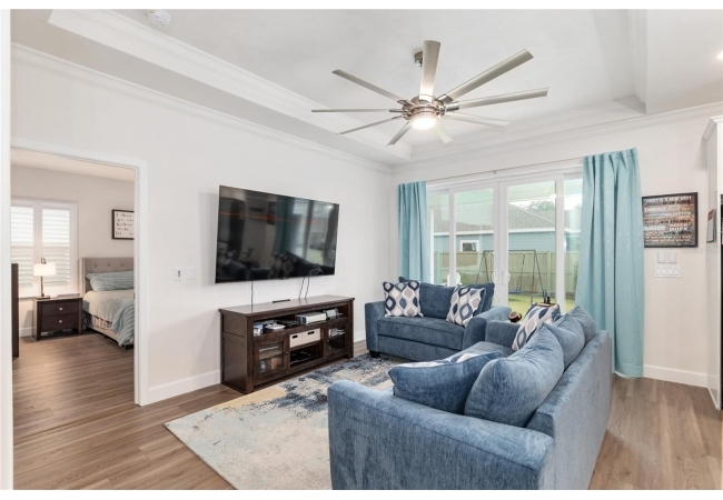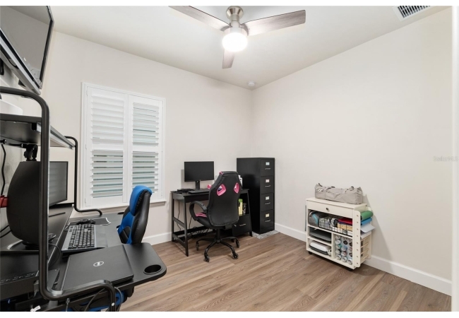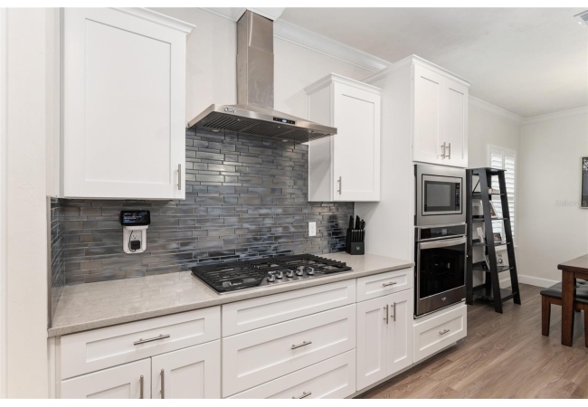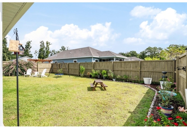 Stylish Comfort Meets Smart Luxury in Grand Oaks! Built in 2022, this stunning Hayleigh II Plan by Weseman Homes & Renovations offers modern craftsmanship, thoughtful upgrades, and a touch of luxury—all in the heart of SW Gainesville’s sought-after Grand Oaks community. Enjoy the convenience of a pool, playground, and covered pavilion just minutes from UF, UF Health, Celebration Pointe, and Butler Plaza.This 4-bedroom, 2.5-bath home features 1,871 square feet of well-designed living space with no carpet, luxury vinyl plank flooring, and ceramic tile throughout. The inviting open layout is filled with natural light, 9-foot ceilings, and tray details with crown molding in both the living area and owner’s suite.The chef’s kitchen impresses with shaker-style soft-close wood cabinetry, quartz countertops, tile backsplash, and stainless steel appliances, including a gas cooktop, wall oven/microwave combo, and a Samsung Bespoke 4-Door Smart Refrigerator in Morning Blue & White Glass. The living room flows effortlessly to a large 17.4ft x 10ft covered back porch overlooking a private, fully fenced backyard with lush zoysia grass and colorful garden beds—perfect for entertaining or relaxing outdoors. The spacious owner’s retreat feels like a private spa with a double-sink vanity featuring deep storage drawers, a large walk-in shower with dual shower heads, a private water closet, and an expansive walk-in closet with a custom wood organization system. Every detail adds comfort and sophistication: custom wood shutters, a decorative mud bench, a closetmaid system in one of the bedrooms, and an extra pantry/linen closet for smart storage. The owner's Energy-efficient features include 15 SEER HVAC, Low-E vinyl windows, R31 attic insulation, R13 walls, radiant heat barrier, and a gas tankless water heater. The home’s curb appeal shines with Hardiboard siding, board and batten accents, stone finishes, and 8-ft carriage-style garage doors for the 2-car garage. The RARE front, side and back irrigation system, and covered front porch complete this beautiful, move-in-ready home. Experience modern living with lasting quality—a rare combination of comfort, luxury, and location in Grand Oaks.