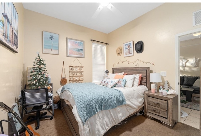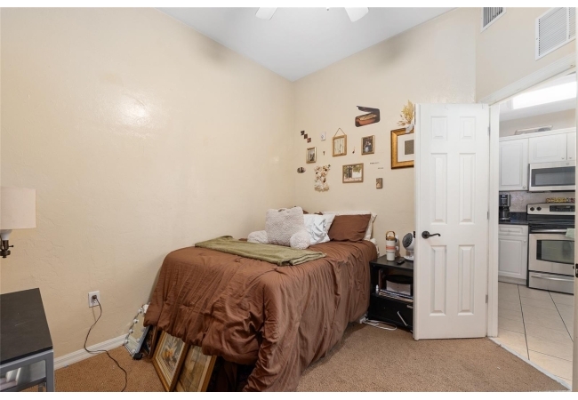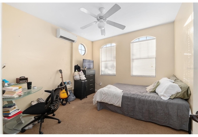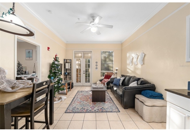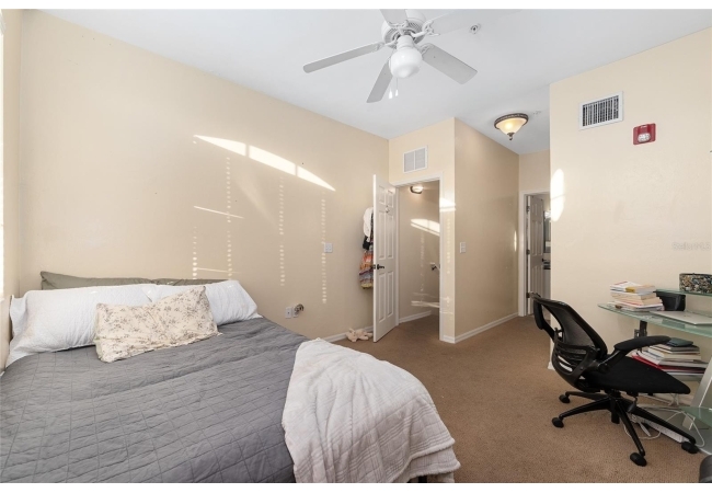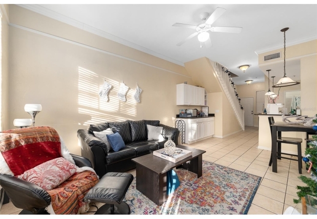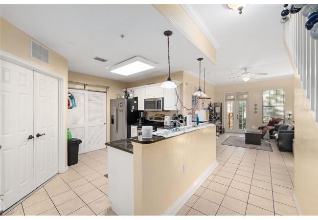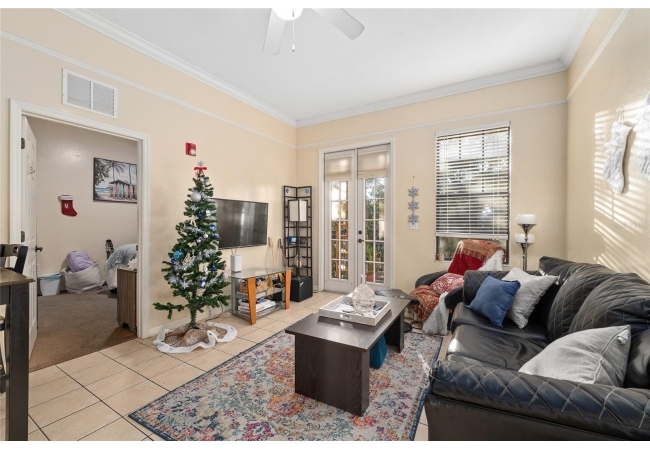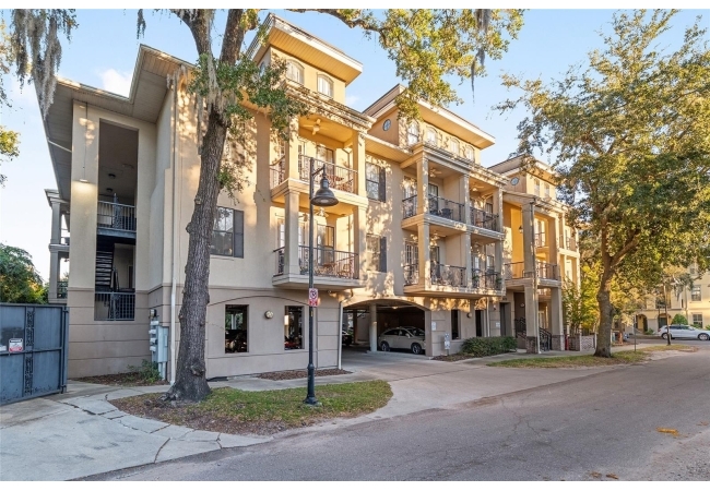 WALK TO UF CAMPUS, THE FOOTBALL STADIUM, AND MIDTOWN! This top-floor condo offers a prime location and a spacious two-story layout with two large bedrooms, each featuring a full bathroom and generous closet space. There is also an additional room with a full third bathroom that can serve as an office or guest room. The kitchen includes granite countertops, stainless steel appliances, a breakfast bar, and ample storage, seamlessly flowing into the living area. Step out onto the expansive New Orleans–style covered balcony, perfect for relaxing or entertaining. The upstairs primary suite features a walk-in closet and private bathroom. High-end finishes include 10-foot ceilings, granite bathroom countertops, crown molding, and a dedicated washer/dryer closet. The building offers an elevator for convenience and one reserved parking space in the downstairs garage. Seller offering a $2,000 credit toward carpet replacement. Walk to UF classes, the Football Stadium, restaurants, and Publix!