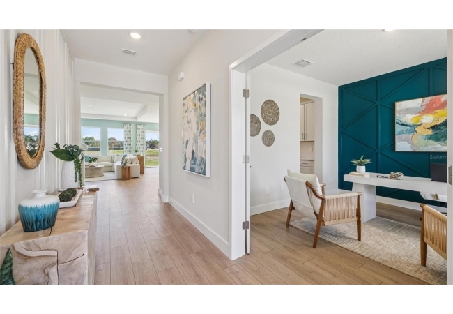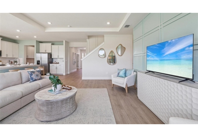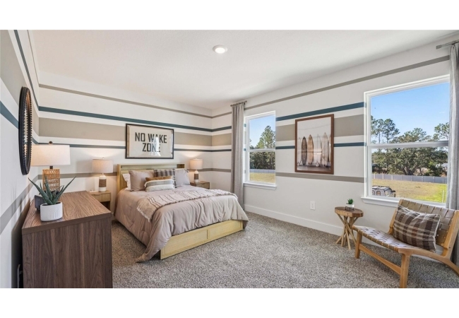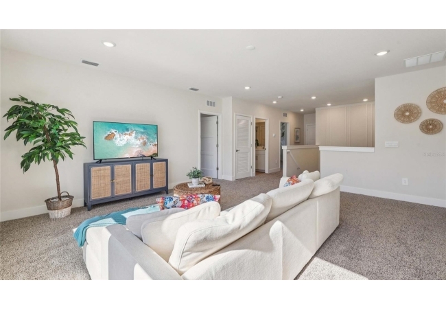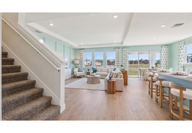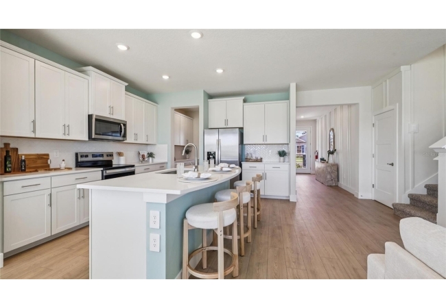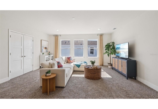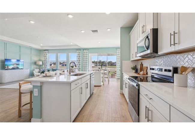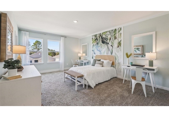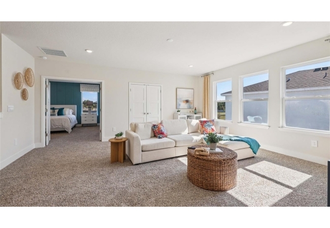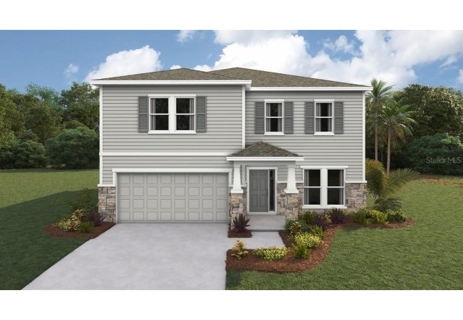 One or more photo(s) has been virtually staged. Under Construction. This two-story home has a large open concept first floor with a kitchen overlooking the great room, dining area, and a covered lanai. A flex room at the entrance of the home, as well as a spacious guest bedroom and full bathroom, complete the first floor. Upstairs, Bedroom 1 with an ensuite bath, three additional bedrooms, a third full bathroom, and a well-appointed laundry room surround a large bonus living room. This home comes with an installed stainless-steel dishwasher, electric range, and microwave. Pictures, photographs, colors, features, and sizes are for illustration purposes only and will vary from the homes as built. Home and community information including pricing, included features, terms, availability, and amenities are subject to change and prior sale at any time without notice or obligation. CRC057592.
