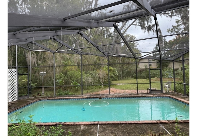 An amazing find in Florida Park! The main home is three bedrooms with two baths, a screened enclosed pool, and it's on a .77 acre lot. At the rear of the property is an additional structure which is two stories. Used previously as an office up top and storage on the bottom it also has a pull through one car garage with doors on either side. In addition to the main home, there is a contiguous .44 acre parcel that is being sold with it. The possibilities are endless for this property! ADU? In-law home? Art studio? Home office? You need to bring your imagination to this property. The main home is ready to move in, and could use updating but is livable, the rear structure would need some finishes.