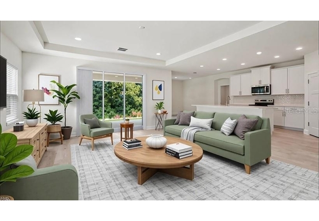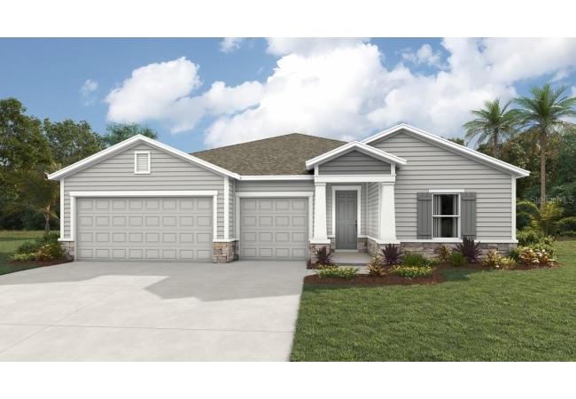 One or more photo(s) has been virtually staged. Under Construction. This one-story home features a large great room with a formal dining room and a well-appointed kitchen with a dinette, all of which overlook a spacious covered lanai that is perfect for extending entertaining space outdoors. This single-story plan features two bedrooms that share a jack-and-jill full bathroom and which are located at the front of the home. The multi-gen living space is located beyond the powder bath and laundry room. Bedroom 1 with an ensuite bath, is located on the back of the home for privacy, offering beautiful views of the backyard. This home includes a stainless-steel range, microwave, and dishwasher. Pictures, photographs, colors, features, and sizes are for illustration purposes only and will vary from the homes as built. Home and community information including pricing, included features, terms, availability and amenities are subject to change and prior sale at any time without notice or obligation. CRC057592.