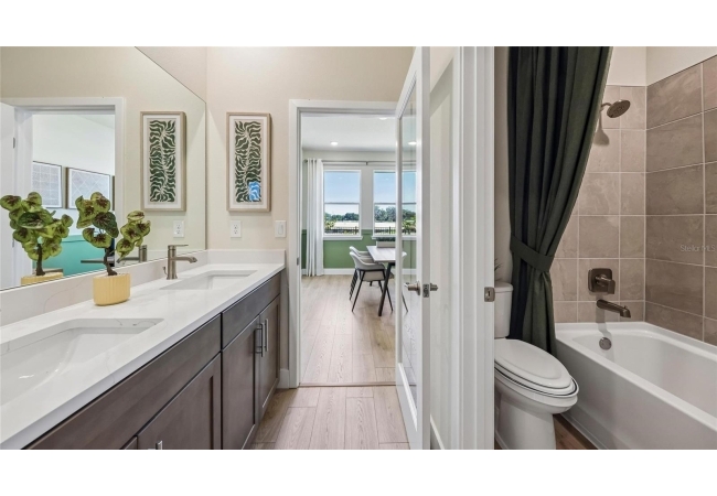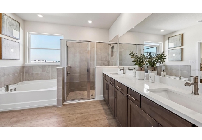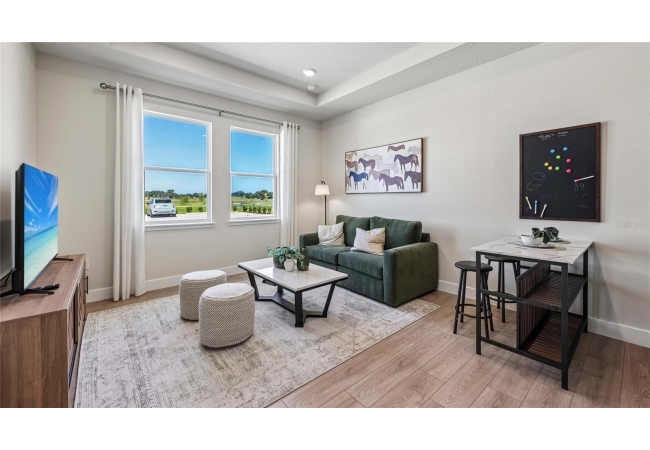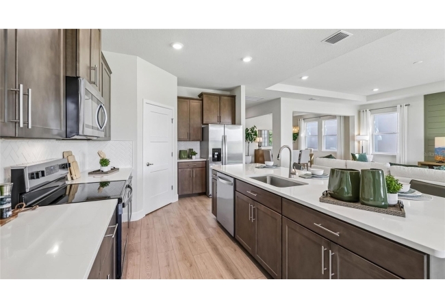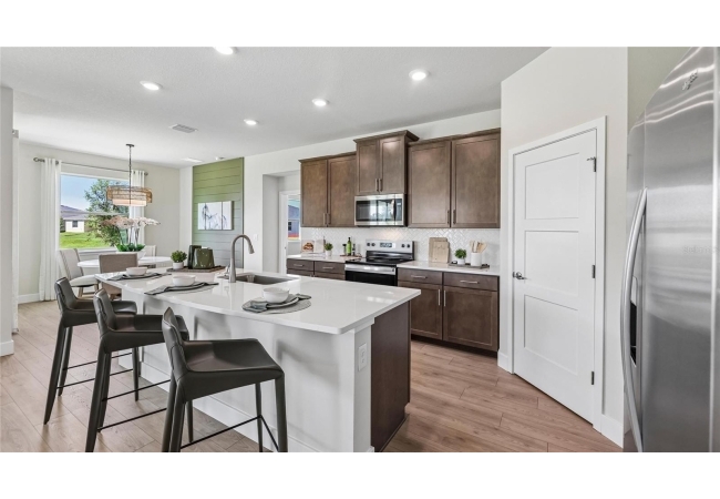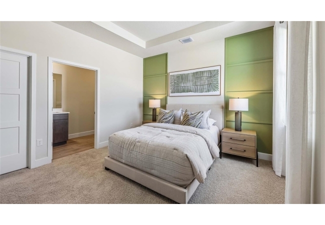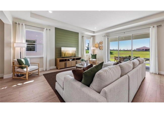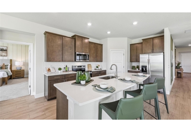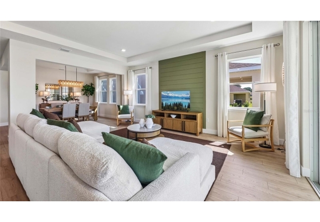One or more photo(s) has been virtually staged. Under Construction. This one-story home features a large great room with a formal dining room and a well-appointed kitchen with a dinette, all of which overlook a spacious covered lanai that is perfect for extending entertaining space outdoors. This single-story plan features two bedrooms that share a jack-and-jill full bathroom and which are located at the front of the home. The multi-gen living space is located beyond the powder bath and laundry room. Bedroom 1 with an ensuite bath, is located on the back of the home for privacy, offering beautiful views of the backyard. This home includes a stainless-steel range, microwave, and dishwasher. Pictures, photographs, colors, features, and sizes are for illustration purposes only and will vary from the homes as built. Home and community information including pricing, included features, terms, availability and amenities are subject to change and prior sale at any time without notice or obligation. CRC057592.