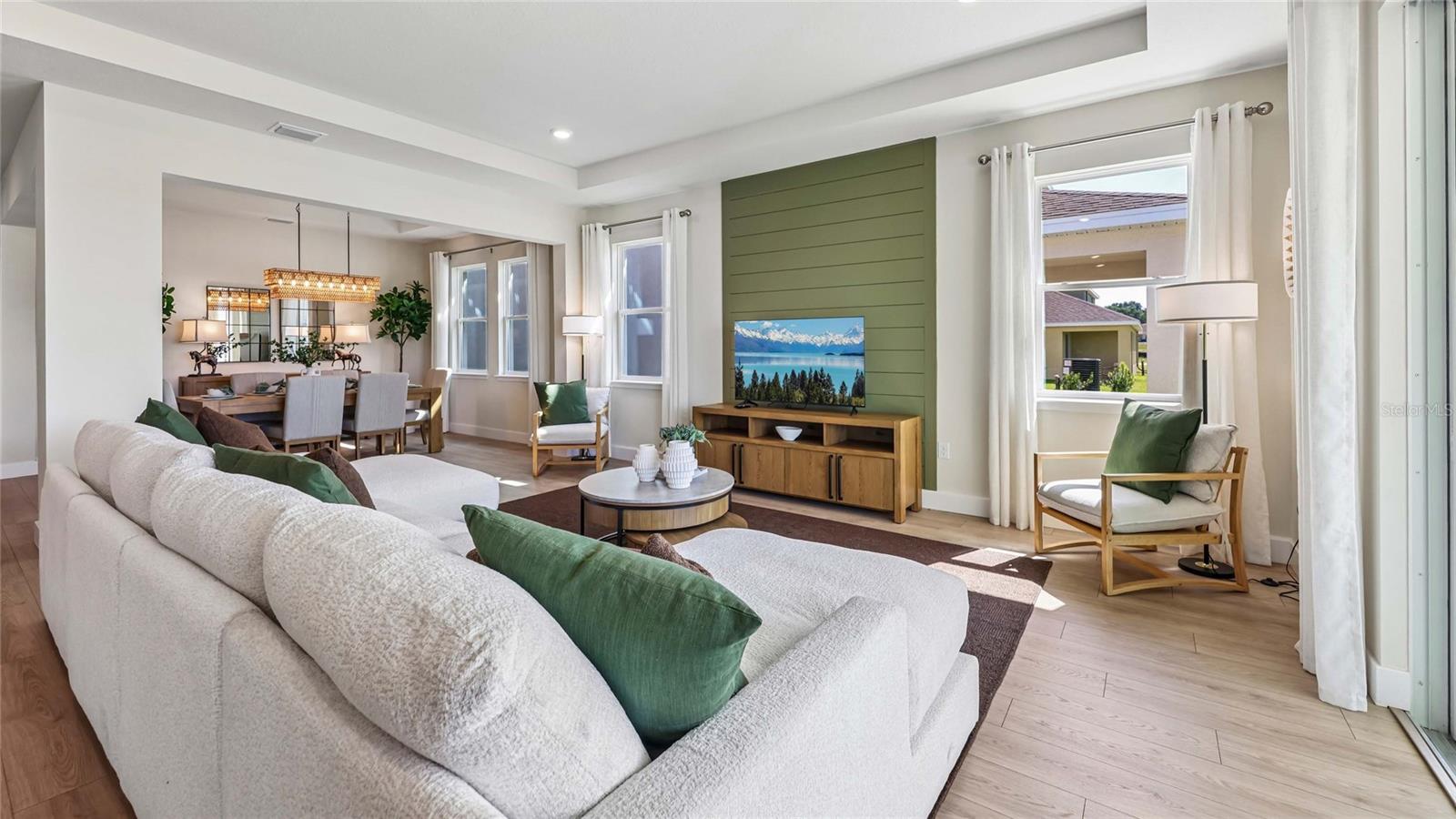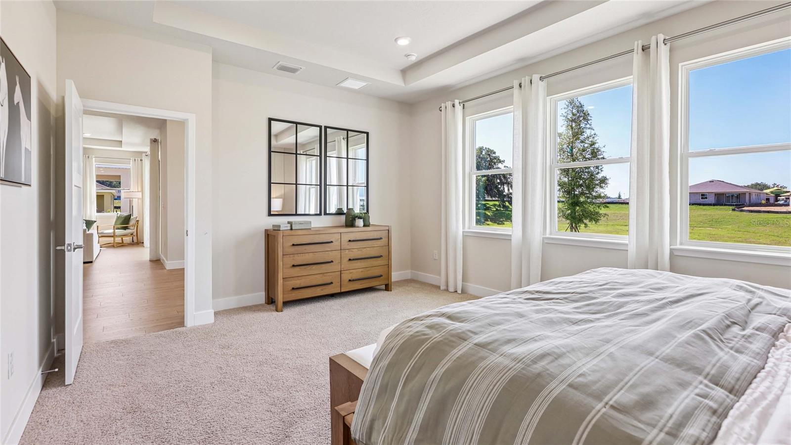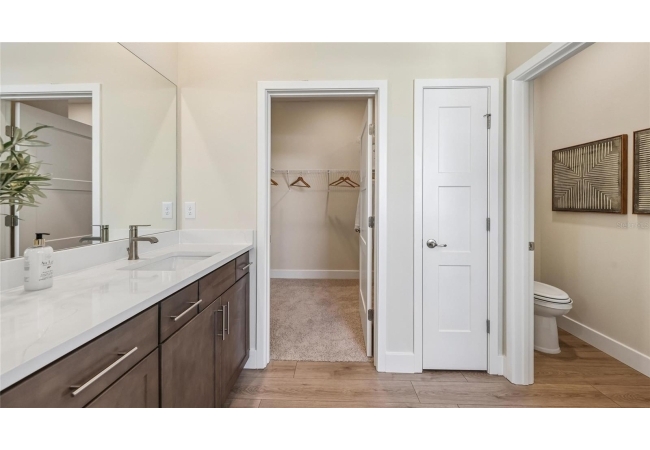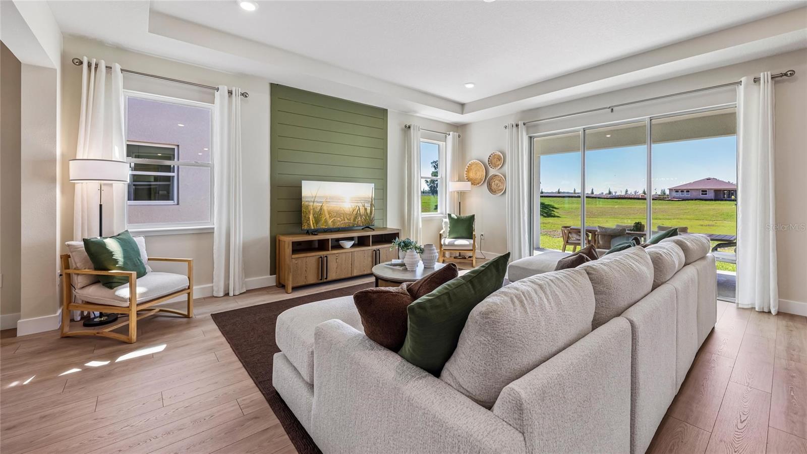 One or more photo(s) has been virtually staged. Under Construction. This one-story home features a large great room with a formal dining room and a well-appointed kitchen with a dinette, all of which overlook a spacious covered lanai that is perfect for extending entertaining space outdoors. This single-story plan features two bedrooms that share a jack-and-jill full bathroom and which are located at the front of the home. The multi-gen living space is located beyond the powder bath and laundry room. Bedroom 1 with an ensuite bath, is located on the back of the home for privacy, offering beautiful views of the backyard. This home includes a stainless-steel range, microwave, and dishwasher. Pictures, photographs, colors, features, and sizes are for illustration purposes only and will vary from the homes as built. Home and community information including pricing, included features, terms, availability and amenities are subject to change and prior sale at any time without notice or obligation. CRC057592.