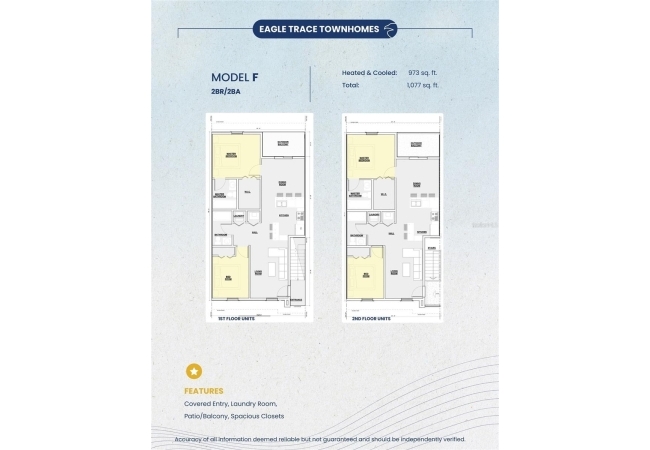 Introducing NEW CONSTRUCTION at Eagle Trace, just 2.3 miles from the University of Florida in the heart of NW Gainesville. The Model F offers a well-planned single-level layout featuring a welcoming covered entry, patio ideal for outdoor enjoyment, and large interior closets including an oversized walk-in closet in the master bedroom. Gourmet kitchen with quartz counters, custom soft-close cabinetry, and fully equipped with stainless steel appliances - including a refrigerator and freezer, smooth-top range, microwave, dishwasher, and garbage disposal. Double-pane windows, luxury vinyl tile wood-look flooring, elegant porcelain tile paired with quartz countertops in the bathrooms, and window blinds included too! Eagle Trace has a beautiful lake-view entrance, a pool, clubhouse, and fitness center—all with a low HOA fee. Each condo comes with a 1-year builder warranty. Current seller incentives include a $4,500 buyer credit, and Seller will pay 12 months of HOA dues with acceptable contract terms! Please note that the photos are of a recently completed model unit with comparable finishes, but may not reflect the specific floor plan of this unit. With quick access to UF Health Shands Hospital, UF campus, and Downtown Gainesville, this new construction condo offers the perfect blend of luxury, affordability, and convenience!