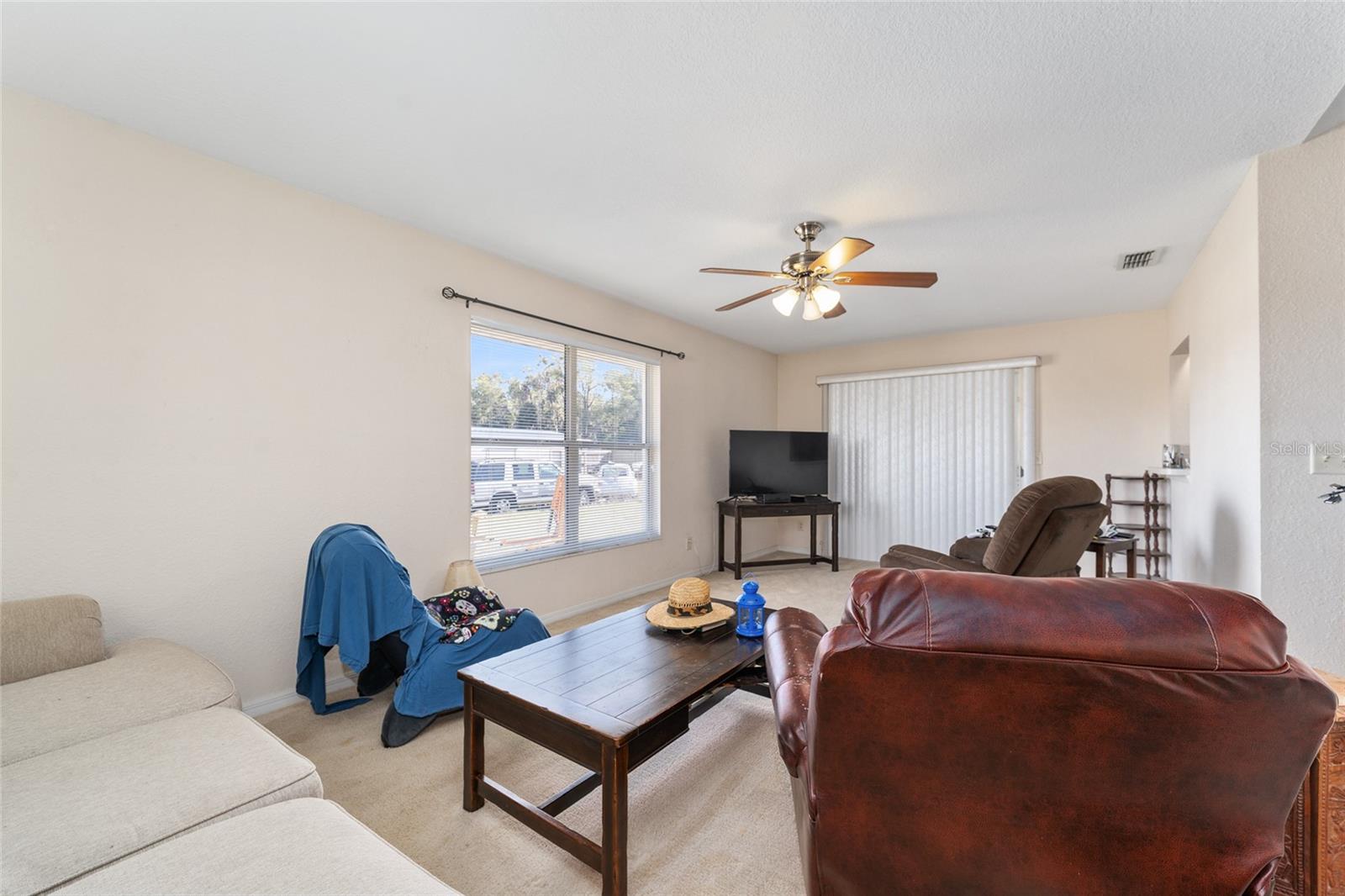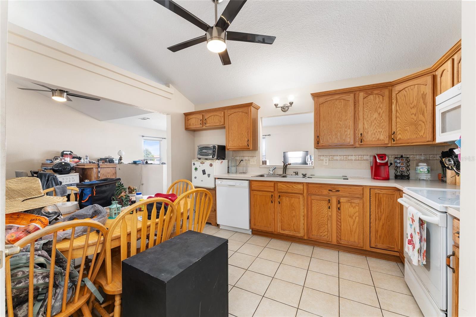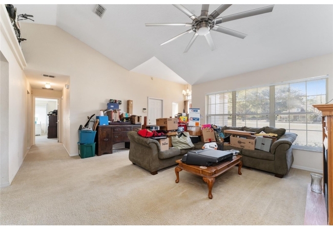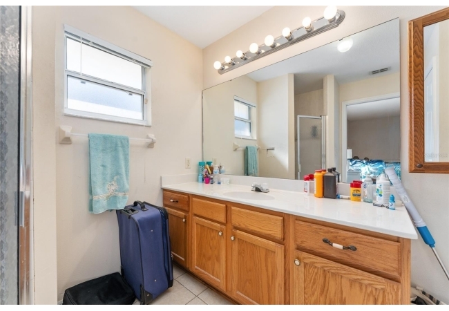 The kitchen is designed for both function and comfort, featuring ample counter space and dual entry points that make meal preparation and hosting effortless. The adjacent living and family areas are bright and welcoming, providing plenty of room to lounge, dine, and enjoy quality time with loved ones. Retreat to the spacious primary suite, complete with an en-suite bathroom that includes a relaxing garden tub and separate walk-in shower. From here, step out to the screened lanai where you can enjoy morning coffee or evening breezes overlooking your expansive backyard.