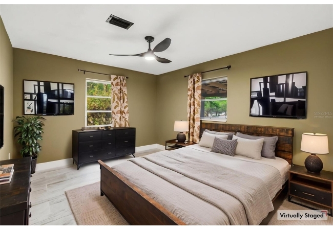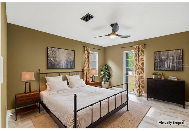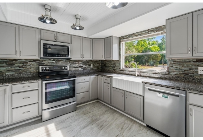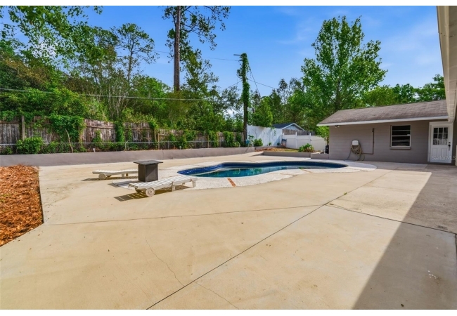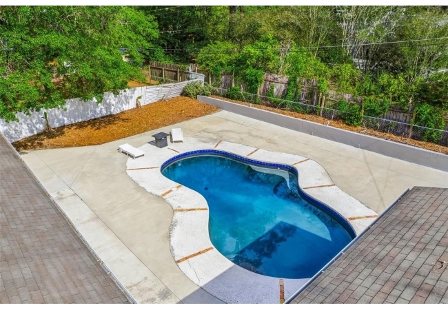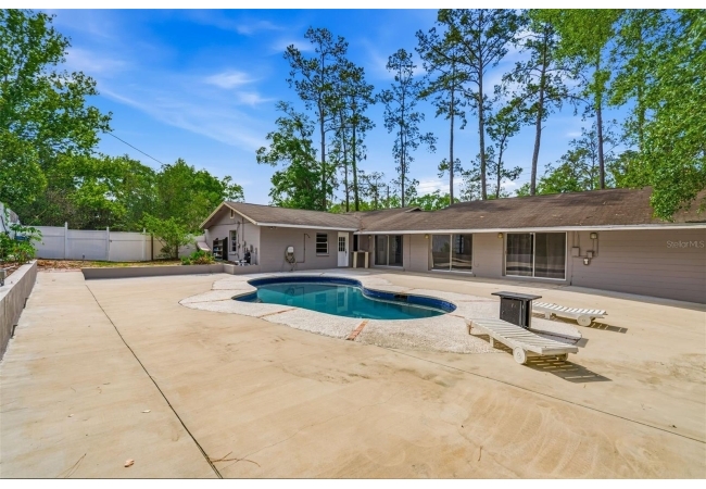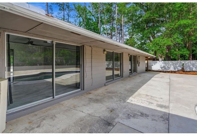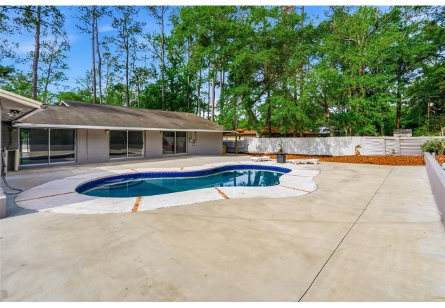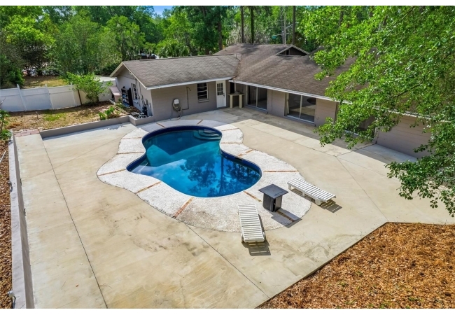 One or more photo(s) has been virtually staged. Spacious 5-bedroom, 3-bath pool home just minutes from the University of Florida. This light-filled residence offers an open-concept kitchen with a built-in dining area, two separate living spaces, updated bathrooms, and solid surface countertops. The private primary suite features a beautiful stone walk-in shower.