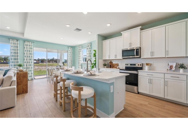One or more photo(s) has been virtually staged. Under Construction. This two-story home has a large open concept first floor with a kitchen overlooking the great room, dining area, and a covered lanai. A flex room at the entrance of the home, as well as a spacious guest bedroom and full bathroom, complete the first floor. Upstairs, Bedroom 1 with an ensuite bath, three additional bedrooms, a third full bathroom, and a well-appointed laundry room surround a large bonus living room. This home comes with an installed stainless-steel dishwasher, electric range, and microwave. Pictures, photographs, colors, features, and sizes are for illustration purposes only and will vary from the homes as built. Home and community information including pricing, included features, terms, availability, and amenities are subject to change and prior sale at any time without notice or obligation. CRC057592.