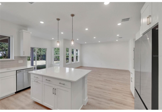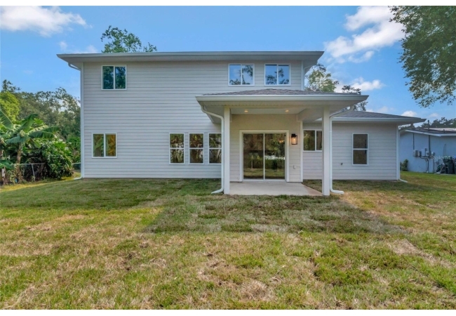 Under Construction. Coming April 2026 on a private 2.5-acre homesite in picturesque Tillman Acres, the Ashland by OLO Builders delivers 2,447 sq. ft. of bright, open-concept living with a soaring two-story foyer, 9-ft ceilings, and a side-entry 2-car garage. A window-lined great room flows to the chef’s kitchen with island, dining bump-out, walk-in pantry, wood cabinetry with soft-close drawers, granite countertops, built-in oven and microwave, electric cooktop, French-door refrigerator, and range hood—plus sliding doors to the open porch. Everyday conveniences include a drop-zone/mudroom, dedicated laundry, and a guest half bath. The main-level primary suite is wrapped in natural light and features a large walk-in closet and spa bath with separate tub and shower, private water closet, and double vanity. Upstairs, a loft/second living area serves three generous bedrooms, a full bath, and a storage closet housing the second heat pump. Thoughtful finishes emphasize comfort and efficiency: durable composite siding with weather wrap, blown-in insulation in exterior walls and ceiling, double-insulated grid-pattern windows, two HVAC systems with heat pumps, wood-laminate main floors, and finished landscaping. Minutes from Historic Downtown High Springs, the Santa Fe River, and the area’s famed springs—Ginnie, Poe, and Blue—this new build blends acreage, craftsmanship, and outdoor adventure in one exceptional address. All photos are representations of a completed home and do not represent the finishes, colors, and selections when completed.