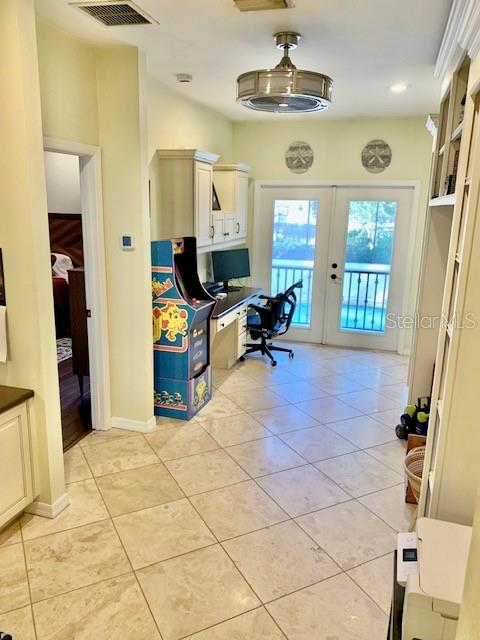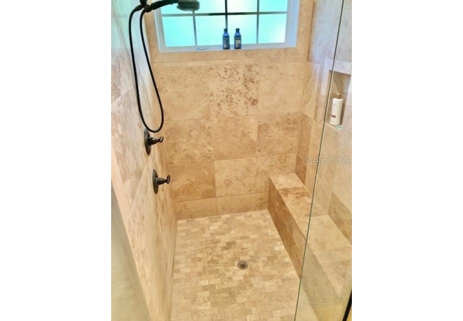 Travertine flooring upgrade in bathrooms and office