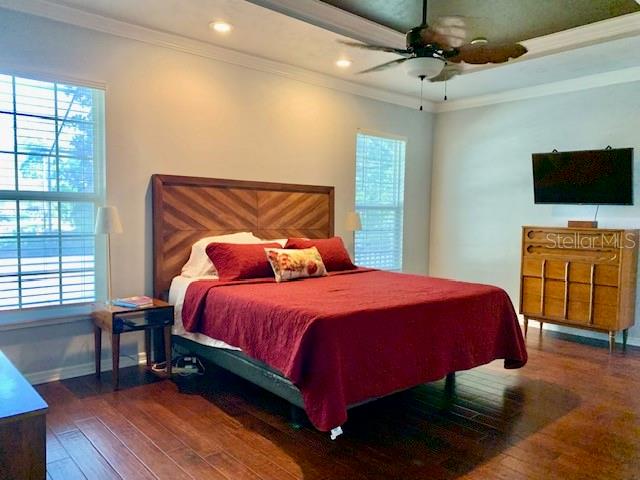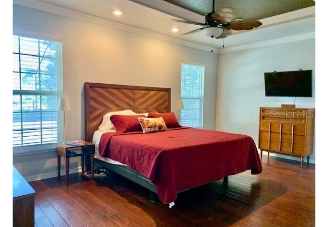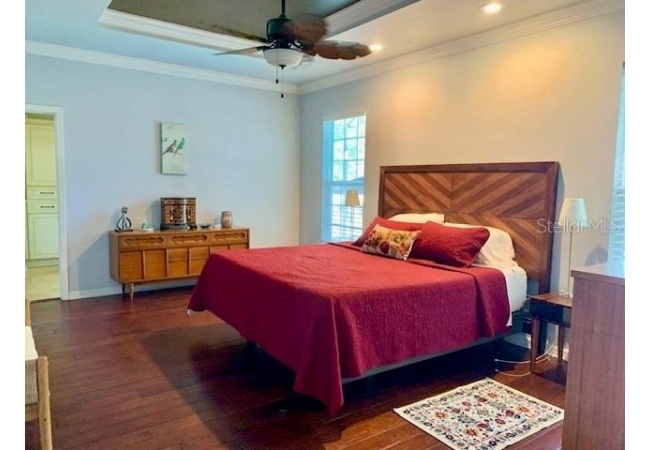 • Primary suite is a true retreat, featuring tray ceilings, crown molding, hand scraped wood floors, and an extra large walk-in closet