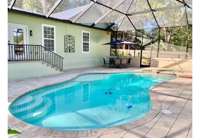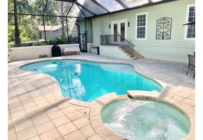 Enjoy the best of Florida living with your own private, heated pool and spa, surrounded by lush landscaping and a contemporary pool cage that offers unobstructed views of the serene, wooded backdrop.