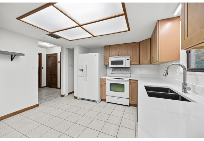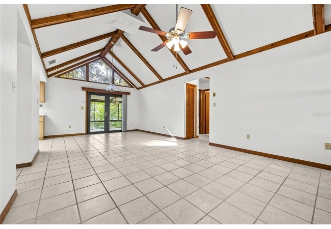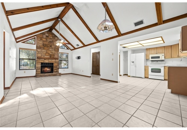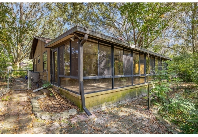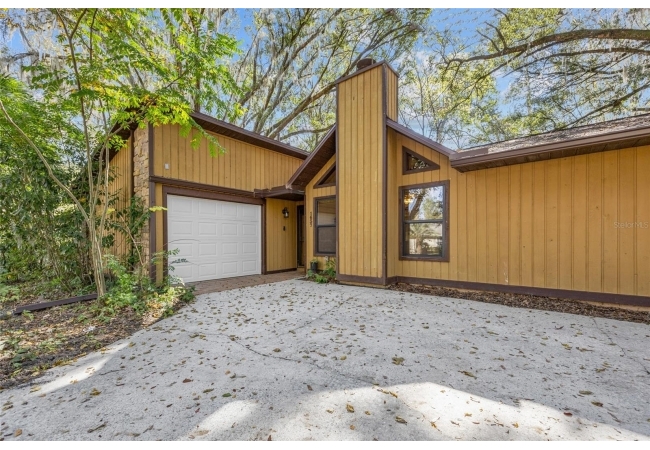 Welcome to this beautifully maintained home tucked away on a peaceful creekside lot in the heart of Gainesville. With a new roof in 2025, HVAC in 2024, and fresh interior paint in 2025, this home is truly move-in ready. Inside, you’ll find an inviting open layout with vaulted ceilings, tile floors throughout, and a cozy fireplace that anchors the living area. The updated kitchen with quartz counters offers an eat-in space with a charming view of the backyard and wooded creek beyond. A spacious enclosed porch, heated and cooled with an efficient mini-split system, adds year-round living space perfect for relaxing or entertaining with nature as your backdrop. The split floor plan provides privacy, with the primary suite featuring a walk-in closet and peaceful creek view. The laundry utility room is conveniently located off the one car garage. Enjoy the tranquility of this natural setting while still being close to shopping, restaurants, and schools. Homes with this combination of charm and location are hard to find!