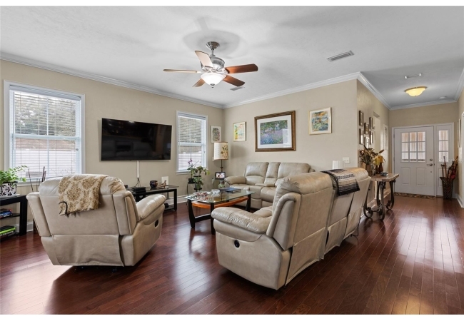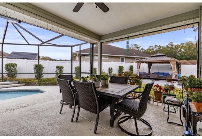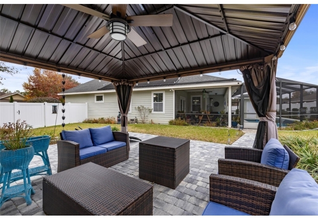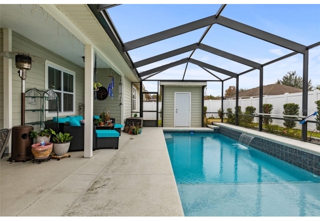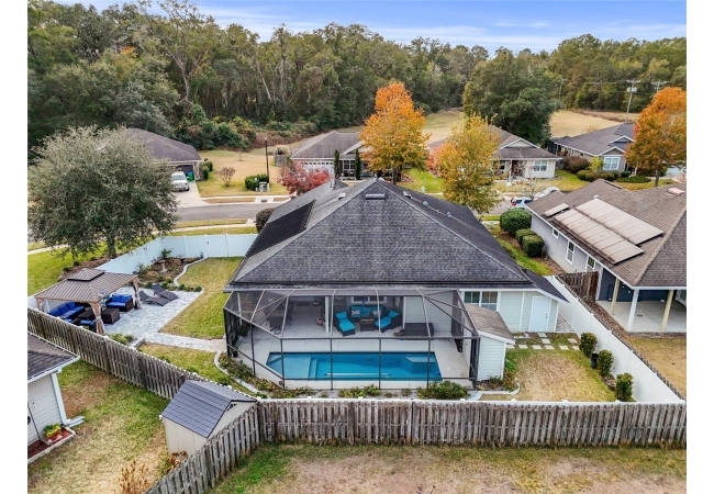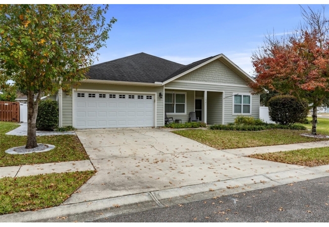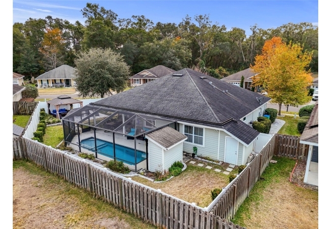 Seller offering is $5,000 credit to buyers!!! Welcome home to this beautiful 3 bedroom, 2 bathroom POOL home! This private and spacious corner lot is nestled in the back of the Oak Ridge neighborhood conveniently located between High Springs and Alachua. When you arrive you’ll appreciate the mature landscaping and welcoming front porch. Step inside to 9’ ceilings, hard flooring throughout, and a spacious yet cozy split floor plan. The two guest bedrooms are located immediately to the left and right of the foyer with the full guest bathroom and a linen closet as well. The foyer opens to a large open concept living area with a view of the back patio and pool. The kitchen boasts stainless steel appliances, an abundance of cabinets and storage space, an island with bar height seating, and granite countertops. The living room and dining room provide the perfect amount of space for hosting all your family and friends. The primary suite is located at the back of the home with a well appointed primary bathroom including a deep soaking tub and a free standing shower. The real show stopper awaits you outside! French doors from the living room lead to an expansive outdoor oasis: a large covered patio, the perfect size pool featuring a water fall and two water fountains, and a storage shed are all within the screened in enclosure. A beautiful paver patio extension with gazebo was added to create an extra outdoor sitting area beyond the screened patio as well! Additional features include: pool pump closet/shed with new pool pump, low maintenance vinyl fencing, blink video camera system, updated LVP in bedrooms, and so much more. Home also has a full house Generac generator. Call today to schedule your showing! *Buyer to verify all property details.*