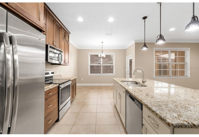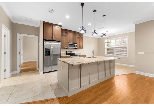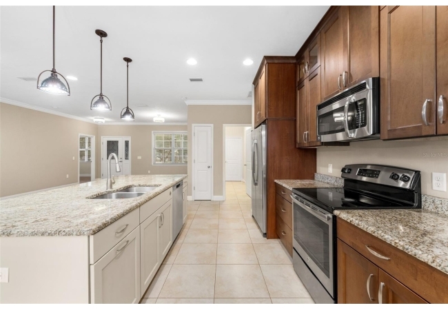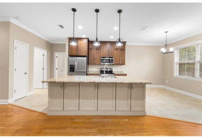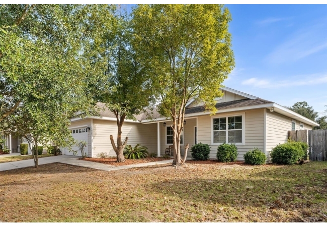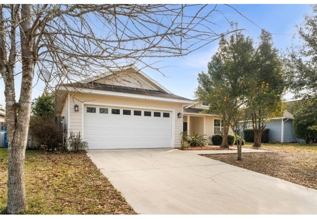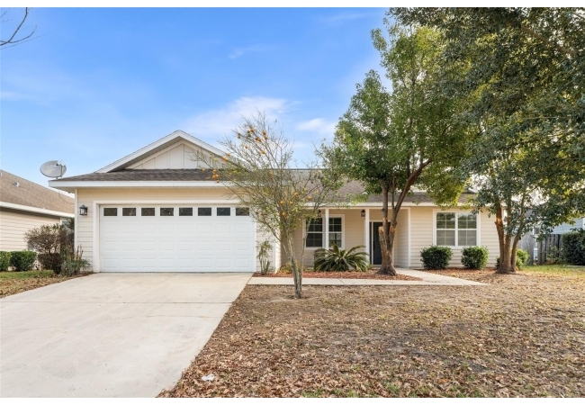 One or more photo(s) has been virtually staged. Discover this well-maintained 4-bedroom, 2-bath home offering an open, split-bedroom floor plan with 9-foot ceilings, crown molding in the main living areas, and original hardwood floors throughout the living spaces and bedrooms. The kitchen features solid wood cabinetry, granite countertops, and a large center island with bar seating, with granite also continued into both bathrooms. The primary suite includes an en-suite bathroom with a soaking tub, separate tiled shower, and dual vanities. Additional highlights include a fully fenced backyard, oversized screened back porch, new blinds, and a 2-car garage. Built by Howe Development and located on a quiet cul-de-sac street in the Oak Ridge community, this home offers a peaceful setting with convenient access to Gainesville, Lake City, and nearby employment and medical hubs—while remaining close to the area’s natural springs and outdoor recreation.
