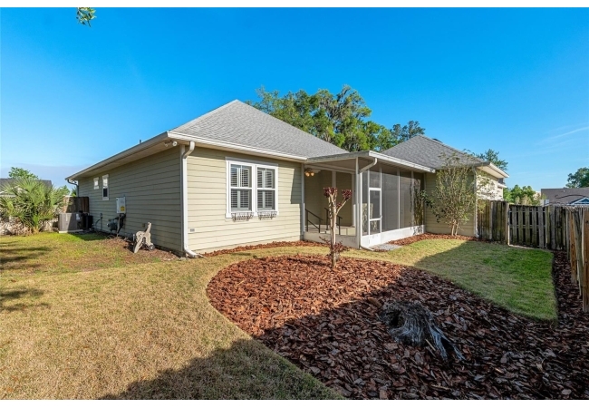 Charming craftsman-style home located in the heart of the City of Alachua. Built in 2006, this well-maintained residence offers 3 bedrooms, 2 full bathrooms, and nearly 1,700 square feet of conditioned living space. The open-concept floor plan features low-maintenance tile flooring throughout, seamlessly connecting the living, dining, and kitchen areas. Interior highlights include high ceilings, crown molding, and plantation shutters, creating a bright and inviting atmosphere. The spacious owner’s suite offers a walk-in closet and an en-suite bath with dual vanities, a walk-in shower, and a private water closet. Two additional bedrooms and a full bath are located on the opposite side of the home, providing ideal separation for guests and family. Additional features include a dedicated laundry room and a rear-entry two-car garage. Enjoy outdoor living from the expansive covered front porch, as well as the rear screened enclosed porch. The backyard is fully fenced backyard and features mature landscaping. Recent major updates include a new roof (2024), HVAC system (2024), and water heater (2025). Community amenities include a playground and sidewalks throughout. Conveniently located near Publix, local shops, and restaurants, with easy access to historic Main Street in Alachua and nearby High Springs as well as I-75. Note: Red boundary outline in photo is approximate.