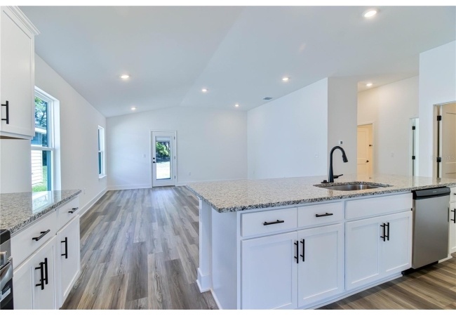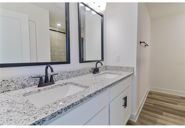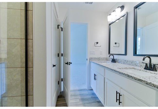 Luxury vinyl plank flooring is installed in all wet areas for long-lasting performance. The primary bathroom includes a ceramic tile 5-foot walk-in shower as an upgrade option, along with dual rectangular sinks. The home also comes equipped with brand-new stainless steel appliances, including a dishwasher, microwave, and range/oven, plus a garbage disposal. Window blind inserts in all rear exterior doors add privacy and convenience.