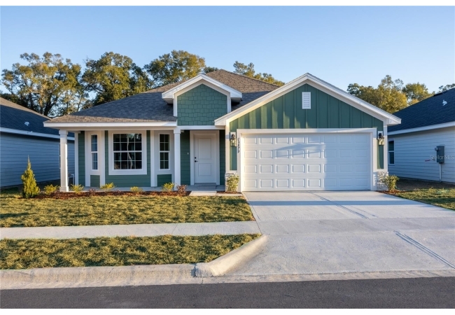 Under Construction. Family-friendly new construction located just fifteen minutes from Gainesville in a growing Alachua community, and only five minutes from I-75. This home blends comfort, functionality, and location—offering convenient access to Gainesville’s schools, healthcare, outdoor recreation, and employment while maintaining a quieter, small-town feel. With inviting front and back porches, this home is designed to enjoy both indoor and outdoor living in North Florida.