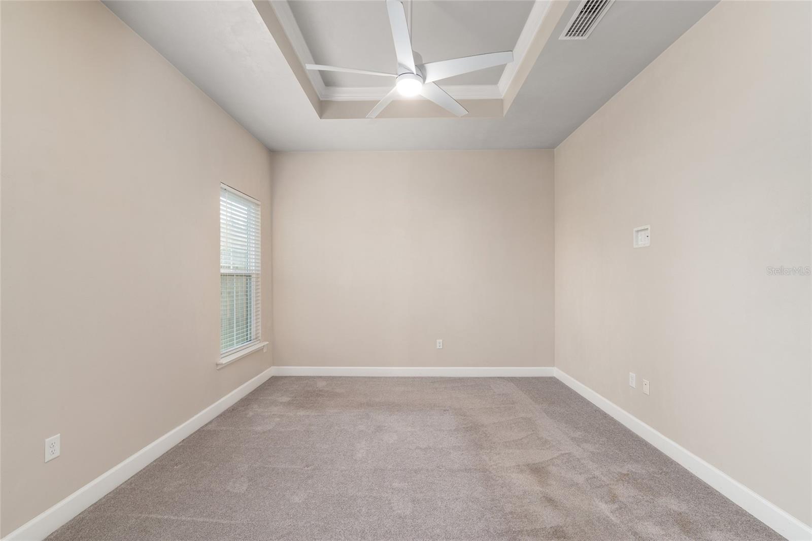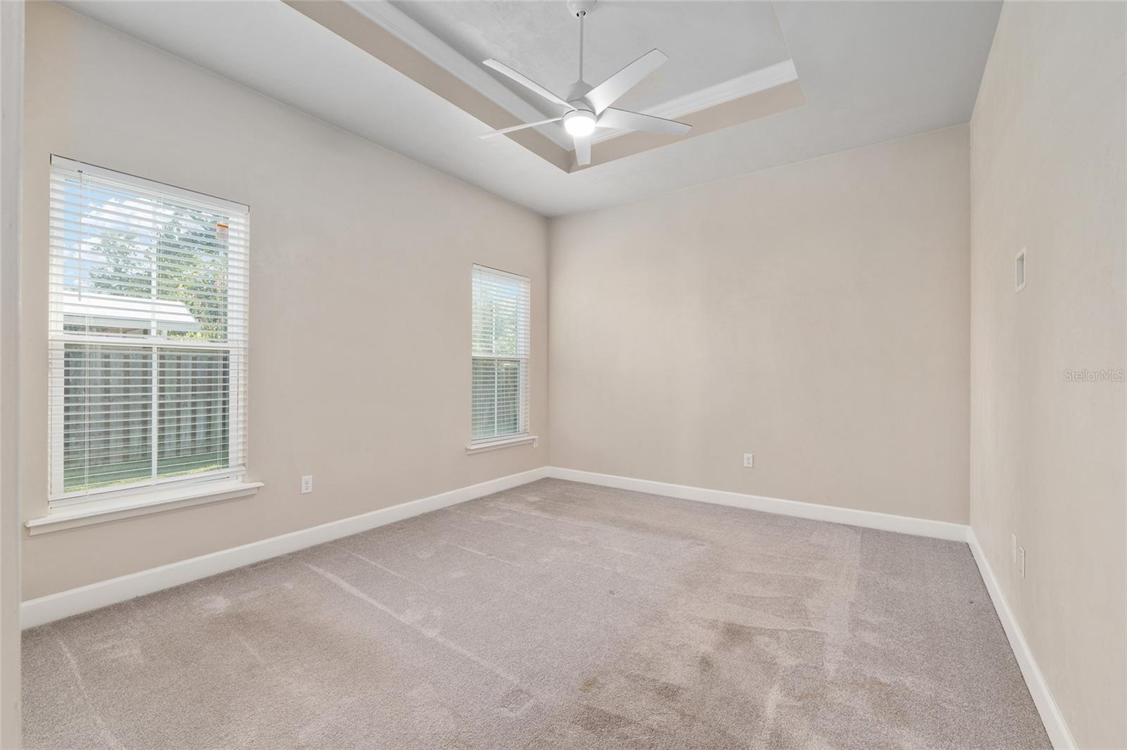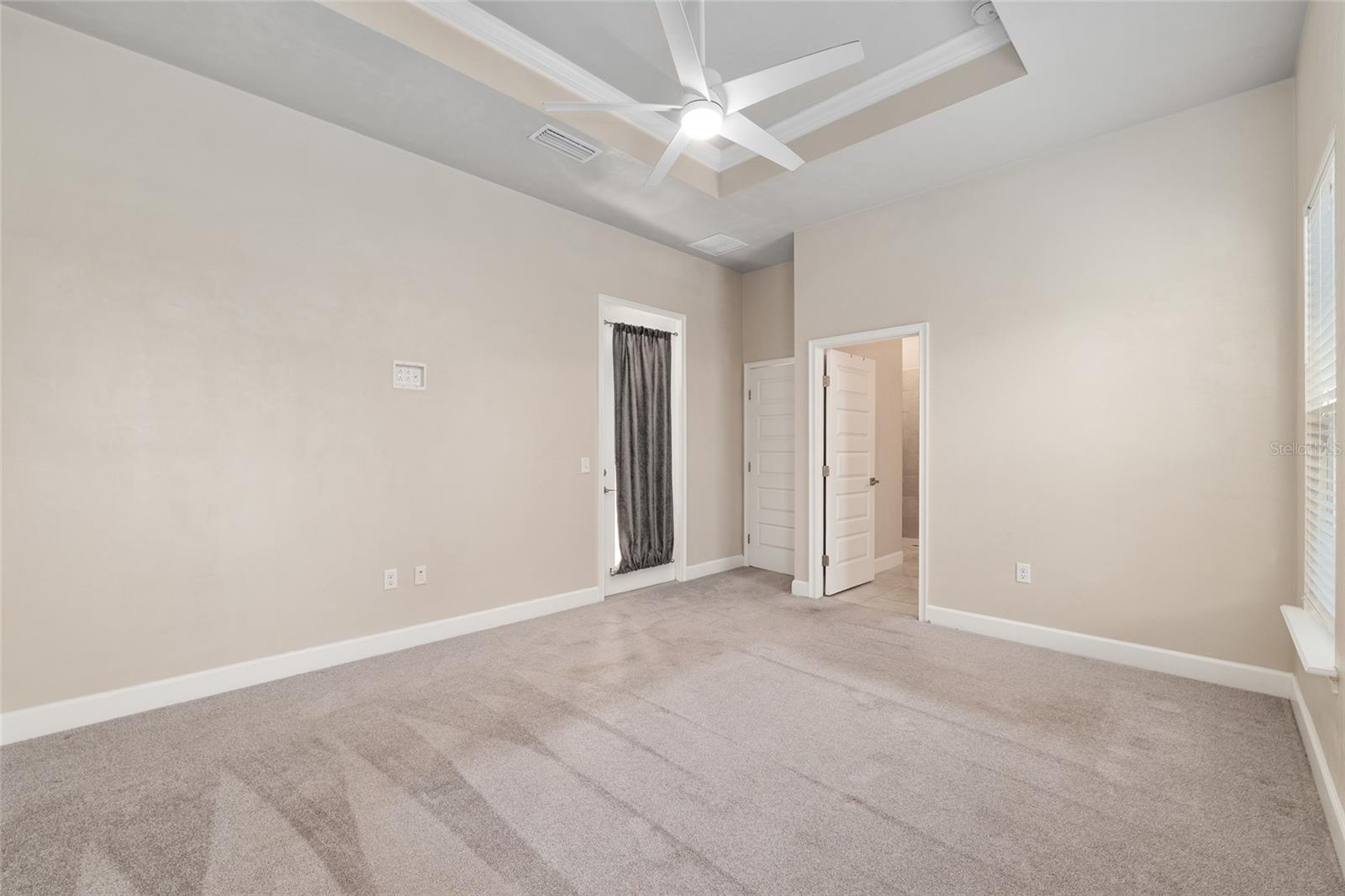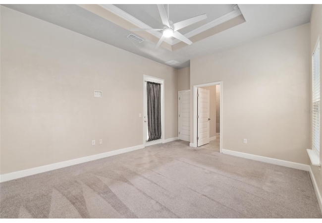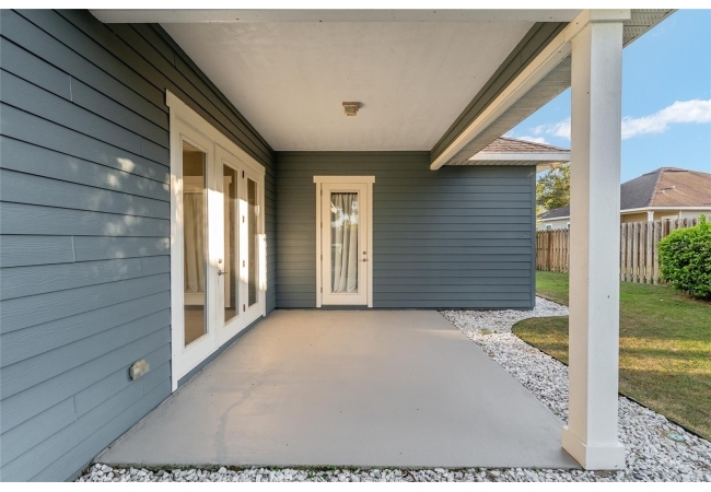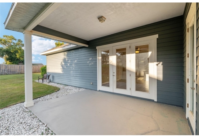 The master suite, with its elegant tray ceiling, feels like a private sanctuary. And when you step out through the glass doors onto the back patio, you’ll find a space framed by graceful live oaks, perfect for evenings under the stars. There’s even a charming front porch that invites you to enjoy a quiet moment at the start or end of the day.