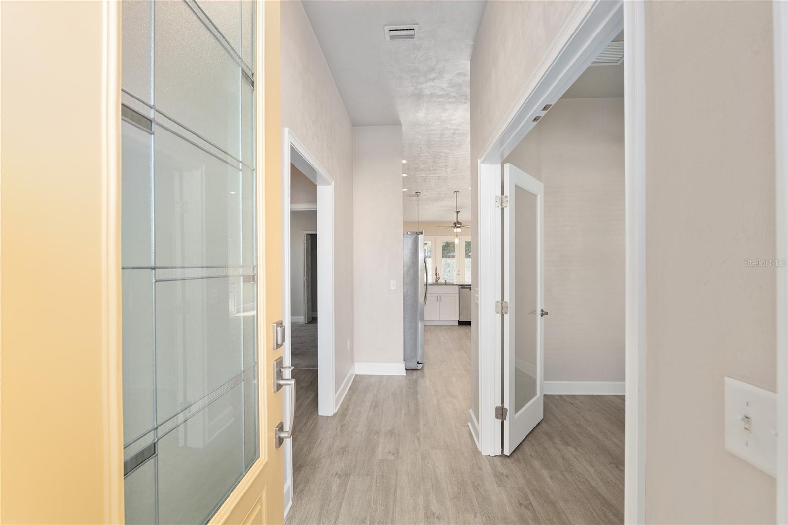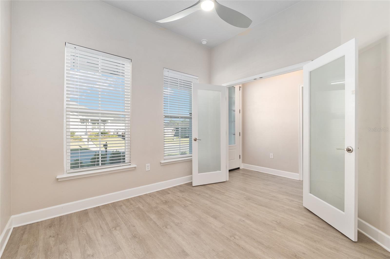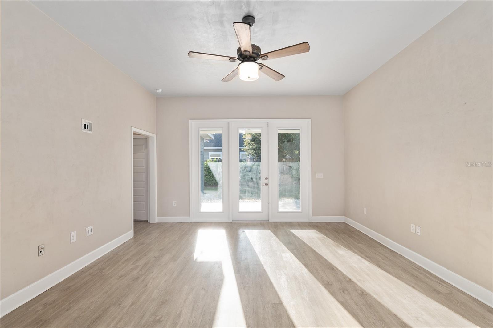 The master suite, with its elegant tray ceiling, feels like a private sanctuary. And when you step out through the glass doors onto the back patio, you’ll find a space framed by graceful live oaks, perfect for evenings under the stars. There’s even a charming front porch that invites you to enjoy a quiet moment at the start or end of the day.