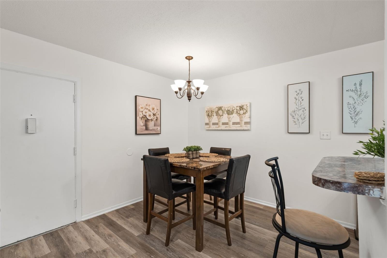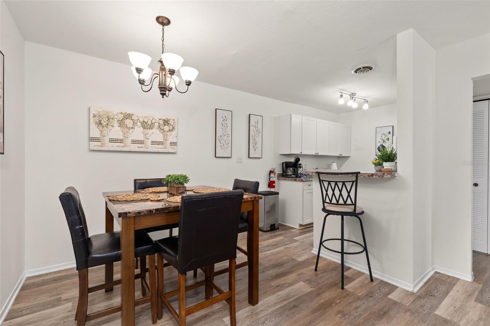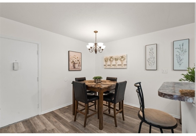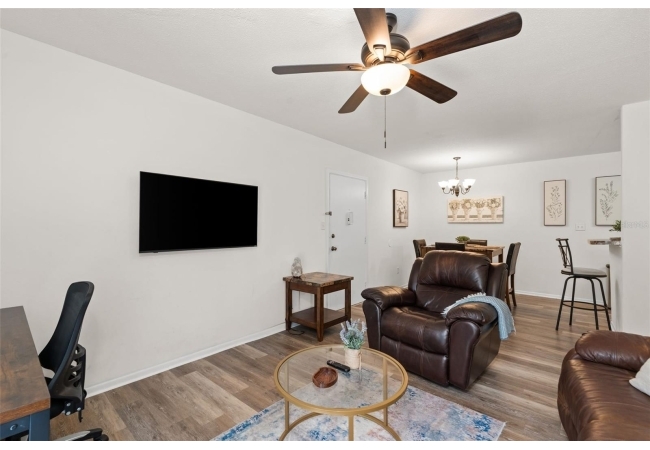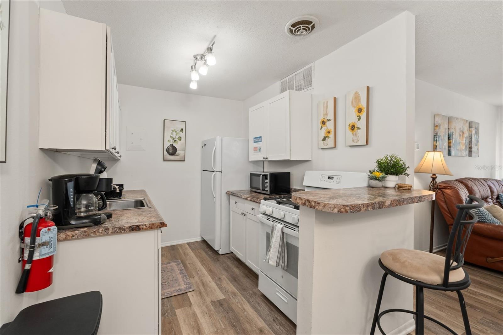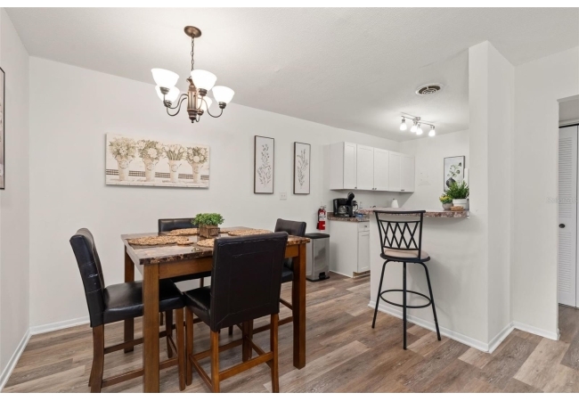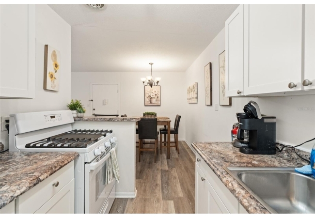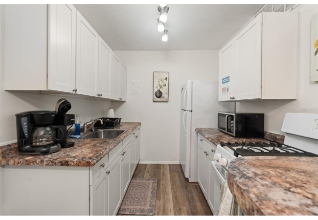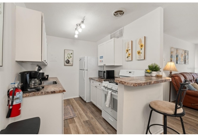 Bright living and dining areas, updated flooring, fully equipped kitchen, and spacious bedroom. No minimum rental period means excellent short- or long-term rental potential. Community pool, laundry facility, on-site parking, and RTS bus stop at the front entrance.