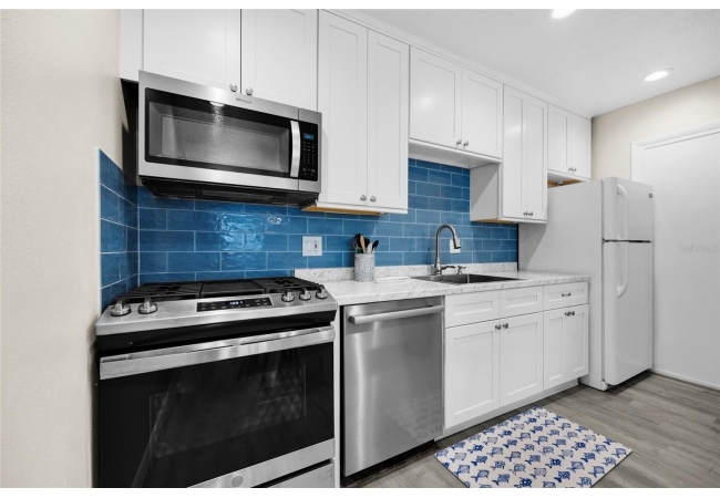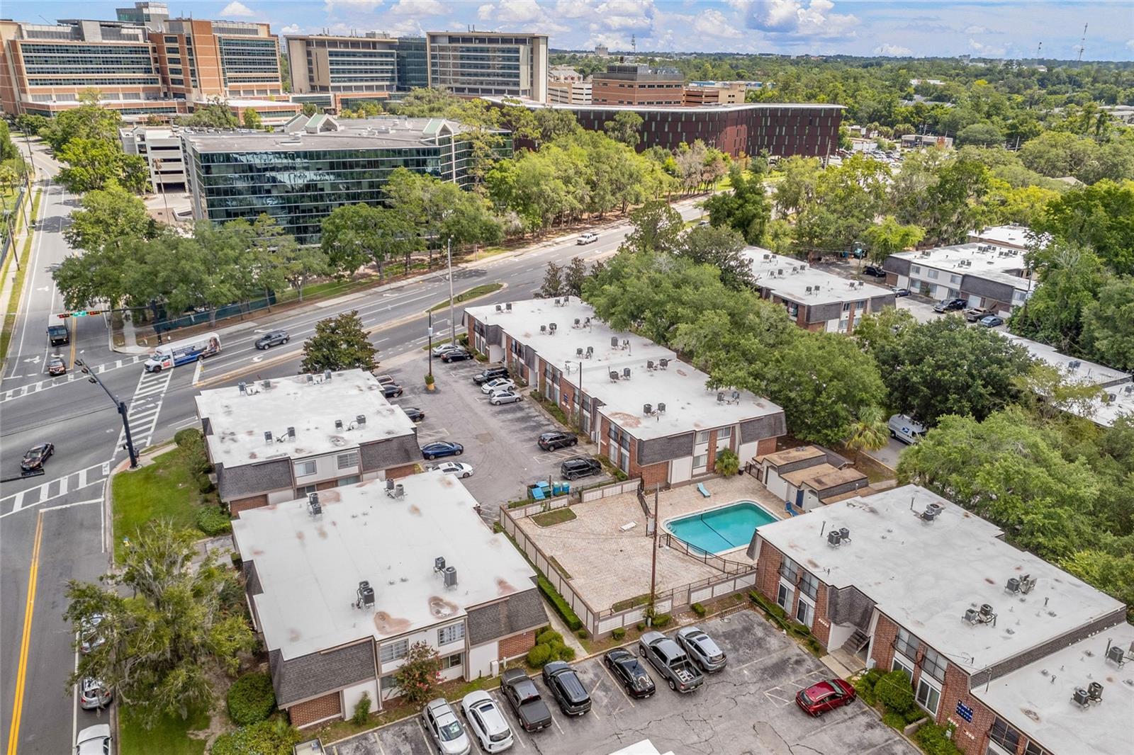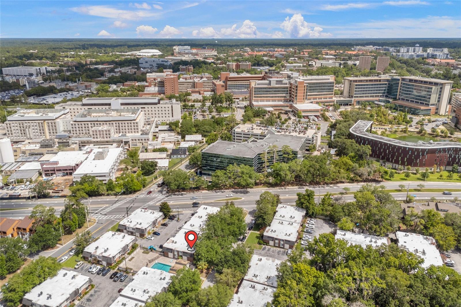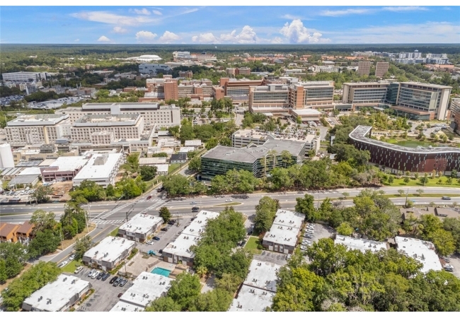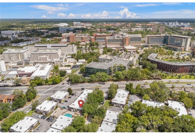 This spacious 2-bedroom, 1- bathroom condo is ideal for the undergrad or graduate student! This unit's highly coveted location facilitates ultra-convenient access to UF Main Campus, VA and Shands Main and Children's Hospitals, UF Vet School, and UF Dental School -- all within steps away; NO VEHICLE REQUIRED! With a rear and unique turnkey investment opportunity, this condo is poised to provide instant ROI. The owners spared no expense renovating this unit with meticulous attention to detail, resulting in an extensively updated living experience throughout. Updates include: NEW HVAC - 2020; HVAC ducts professionally cleaned - 2024; NEW Water Heater - 2023; NEW Vinyl Plank Flooring throughout - 2024; NEW interior 6-Panel Doors, Trim, Fans, Blinds and fresh Interior Paint - 2024; NEW Exhaust Fans - 2024; NEW Bathroom Vanity, Sink & Mirror - 2022; NEW Circuit Breakers - 2024; NEW, completely renovated Kitchen - 2024; 42" Cabinets maximizes space all the way to ceiling; Pull-Outs in lower cabinet; Soft-Close Doors and Drawers; beautifully tiled Backsplash; Kraus deep Stainless Kitchen Sink; NEW Range, NEW Microwave, NEW Dishwasher, and NEW Garbage Disposal - 2024; NEW LED Can Lighting - 2024; NEW textured finish on Walls and Ceilings - 2024. This corner unit is also conveniently located adjacent to the community pool, assigned mailbox, and laundry facilities. This is a MUST-SEE opportunity that won't last long. Schedule your tour today!