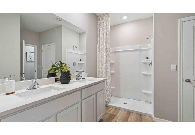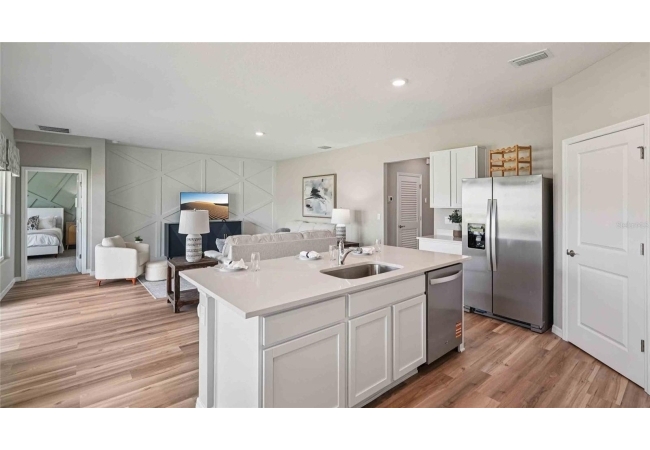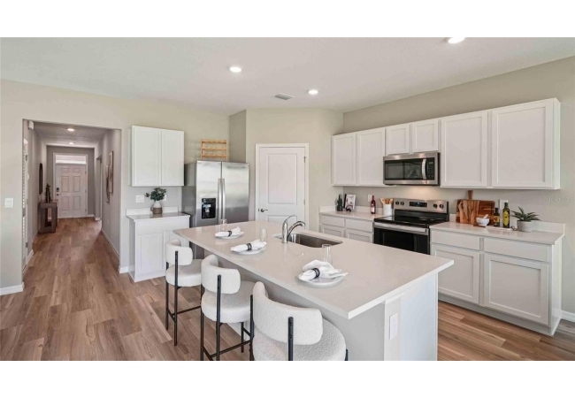 One or more photo(s) has been virtually staged. Under Construction. The Madison is a thoughtfully designed 3-car garage home with an inviting open-concept layout perfect for all families. As you enter the foyer, you're greeted with two guest bedrooms and a shared guest bathroom. Across the hallway you will find the laundry room, linen closet, and a third guest bedroom complete with an ensuite bathroom. Heading into the kitchen, there is a large kitchen island with quartz countertops, stainless-steel appliances, and a spacious walk-in pantry. The kitchen overlooks the great room and dining area flowing into the outdoor covered lanai. Next to the living room is the primary bedroom with a double vanity, quartz countertops, and two closets. Bedroom four has an ensuite bathroom and is located next to the designated laundry room. The Madison is the epitome of modern living and includes a state-of-the-art smart home system. Pictures, photographs, colors, features, and sizes are for illustration purposes only and will vary from the homes as built. Home and community information including pricing, included features, terms, availability and amenities are subject to change and prior sale at any time without notice or obligation. CRC057592.