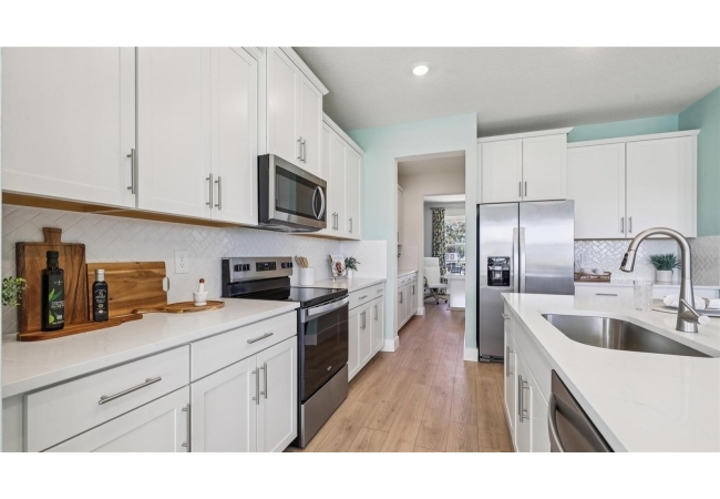 One or more photo(s) has been virtually staged. Under Construction. This two-story home has a large open concept first floor with a kitchen overlooking the great room, dining area, and a covered lanai. A flex room at the entrance of the home, as well as a spacious guest bedroom and full bathroom, complete the first floor. Upstairs, Bedroom 1 with an ensuite bath, three additional bedrooms, a third full bathroom, and a well-appointed laundry room surround a large bonus living room. This home comes with an installed stainless-steel dishwasher, electric range, and microwave. Pictures, photographs, colors, features, and sizes are for illustration purposes only and will vary from the homes as built. Home and community information including pricing, included features, terms, availability, and amenities are subject to change and prior sale at any time without notice or obligation. CRC057592.